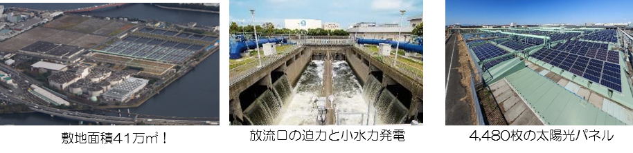 ・敷地面積41万㎡、区部全域の4分の1の面積を処理する巨大水処理施設に加えて、