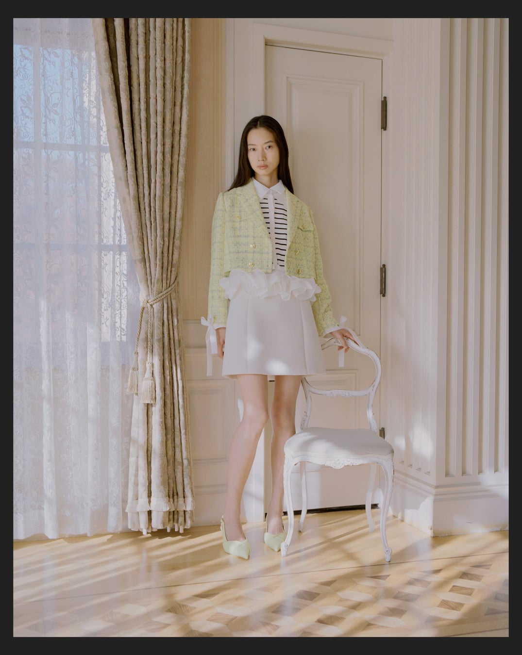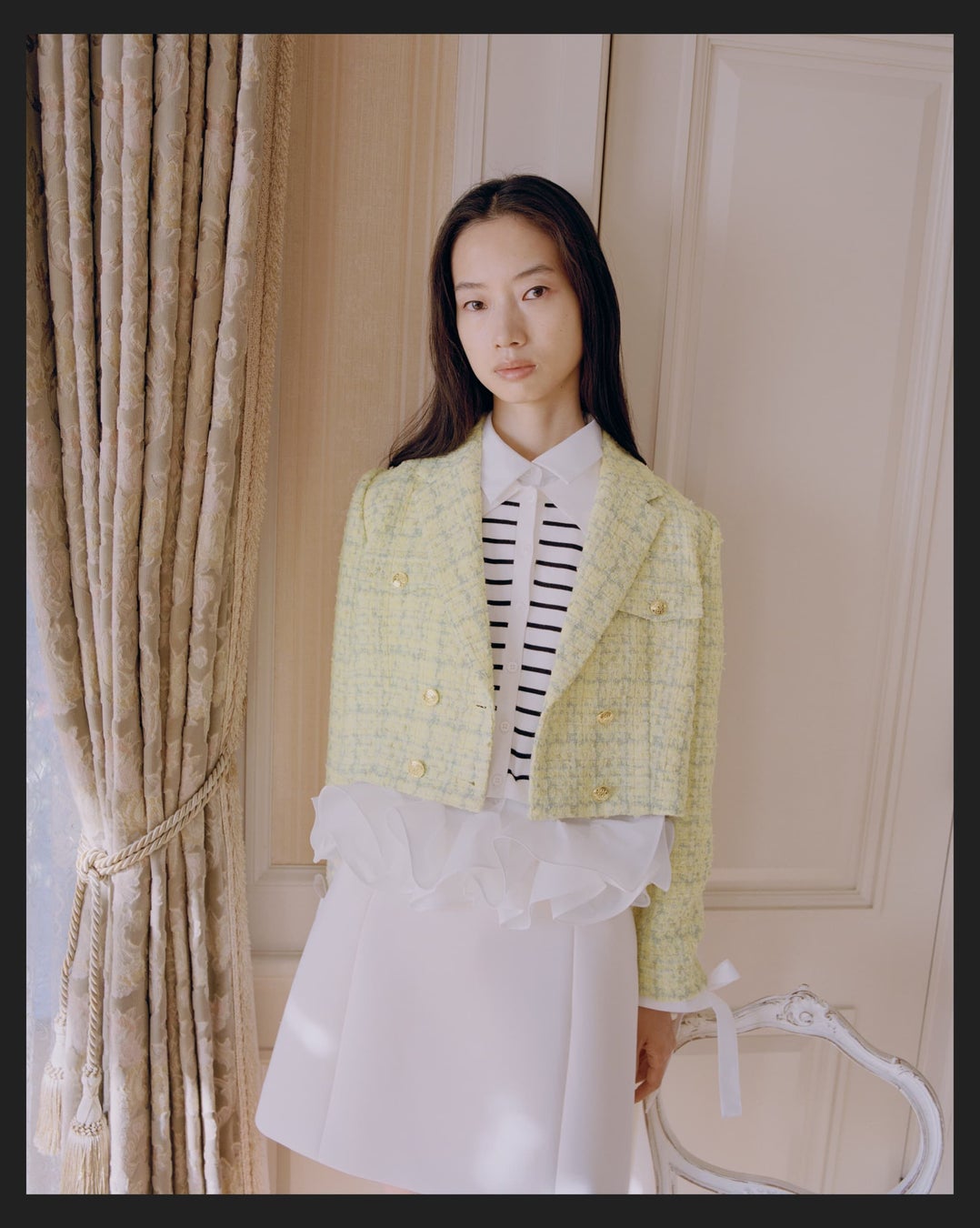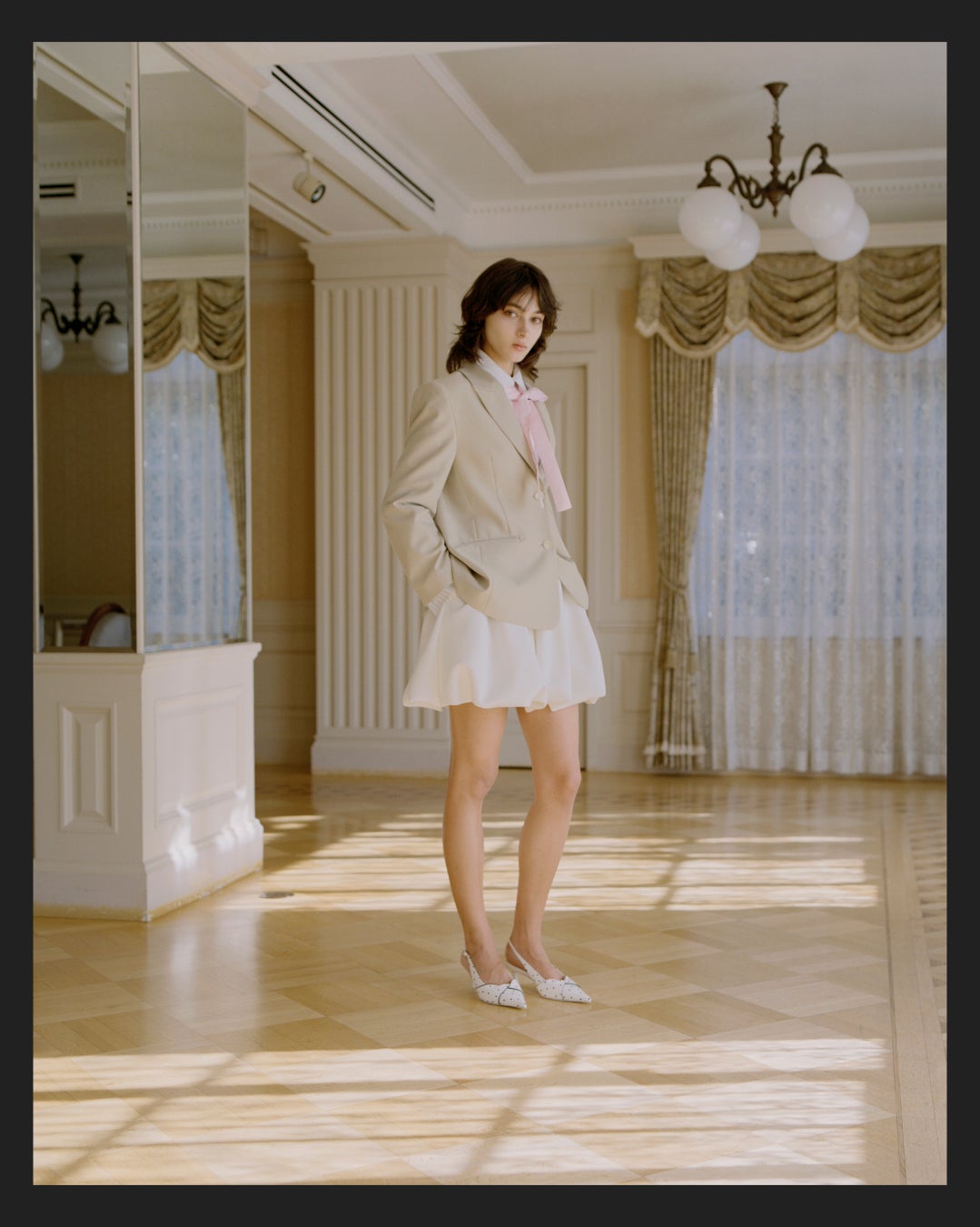 タイムレスで洗練されたムードはそのままに、ドットやフリルが軽やかに揺れ、