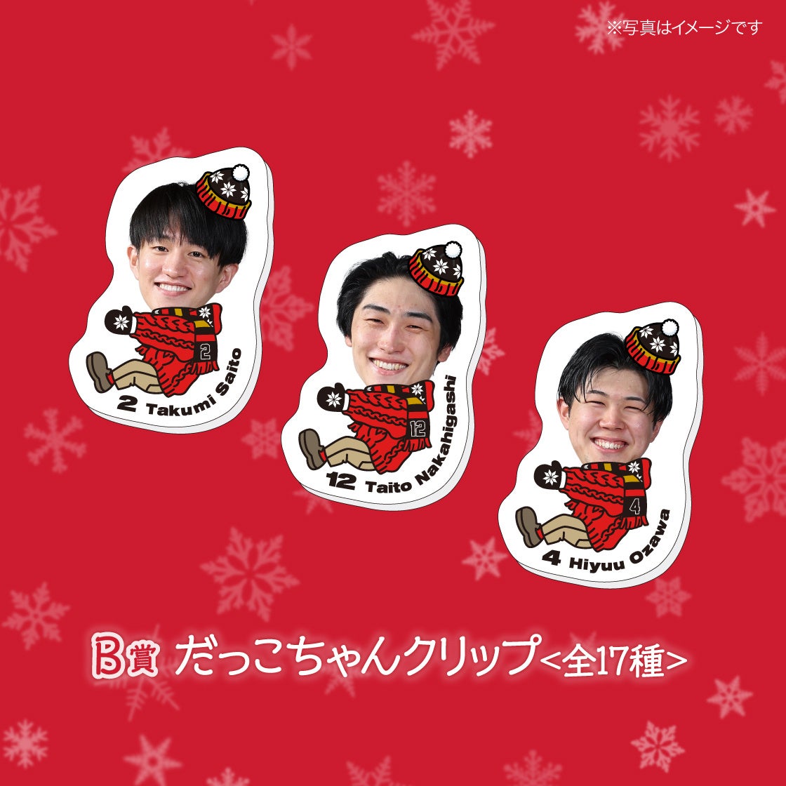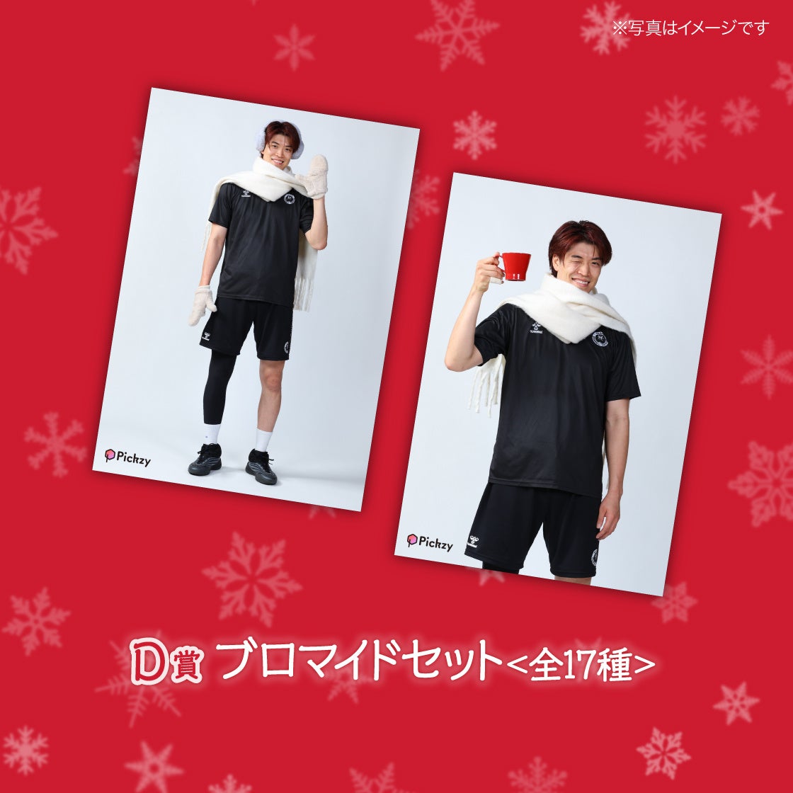 くじ販売期間中にPickzyのSNSアカウントをフォロー&リポストした方のなかから、抽選で選手着用の撮影小物とお好きな選手のサイン入りブロマイドをセットでプレゼント!