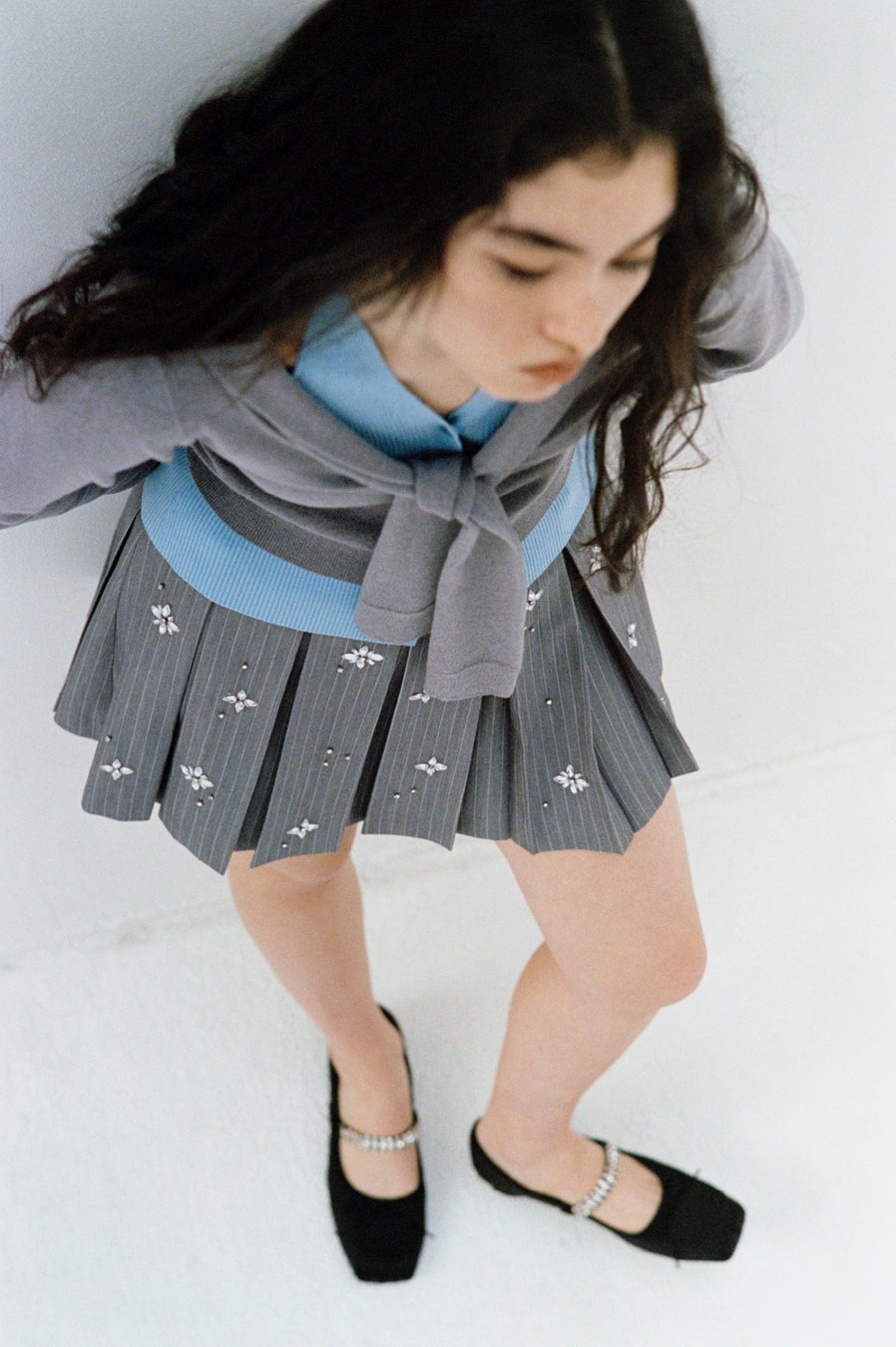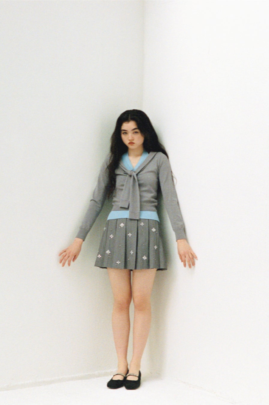 ブルーにはサテンのバラモチーフとビジューを、ブラックにはハートのメタルモチーフとカラフルなビジューをあしらい、それぞれに個性をプラス。