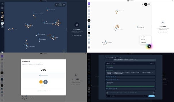 Graph×LLMを中核に、対話で選んだノードやカテゴリを文脈としてAIに渡し、知識をいもづる式に辿れる知識発見・共有ツールです。ノートやチャット、資料を自動で関連付けて可視化し、ユーザーとAIが同じ情報空間を参照しながら思考・創造を進められます。知識が自律的に循環・成長し、研究・開発・学習を加速します。