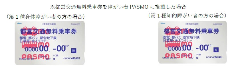 また、障がい者PASMOについては、都内に住所を有する身体障がい者、知的障がい者の方等に発行している都営交通無料乗車券を搭載することが可能です。