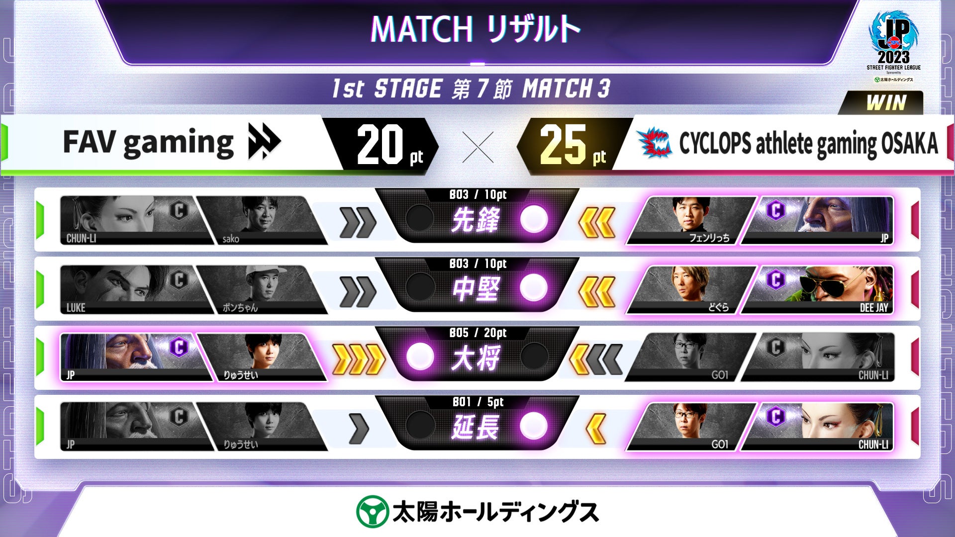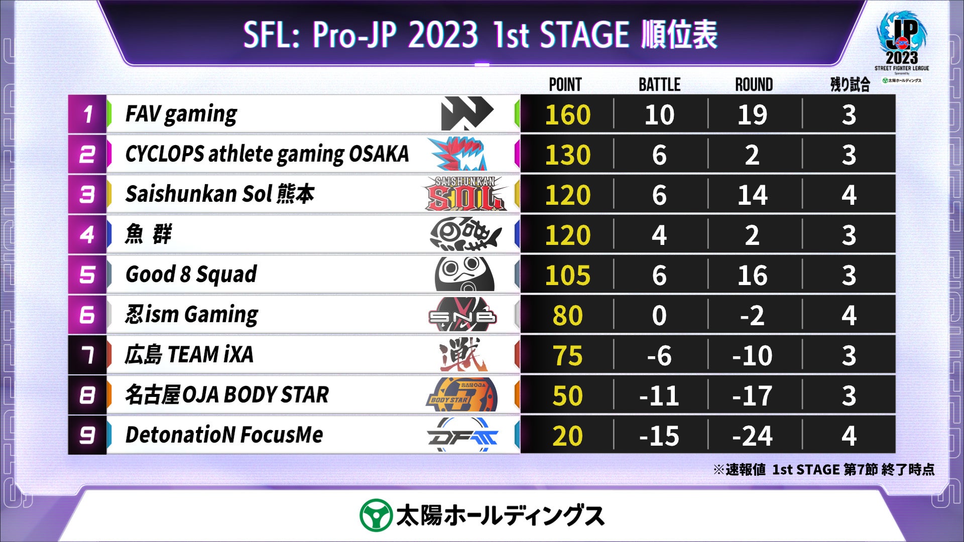 「ストリートファイターリーグ: Pro-JP 2023」結果速報! 1stステージ 第7節