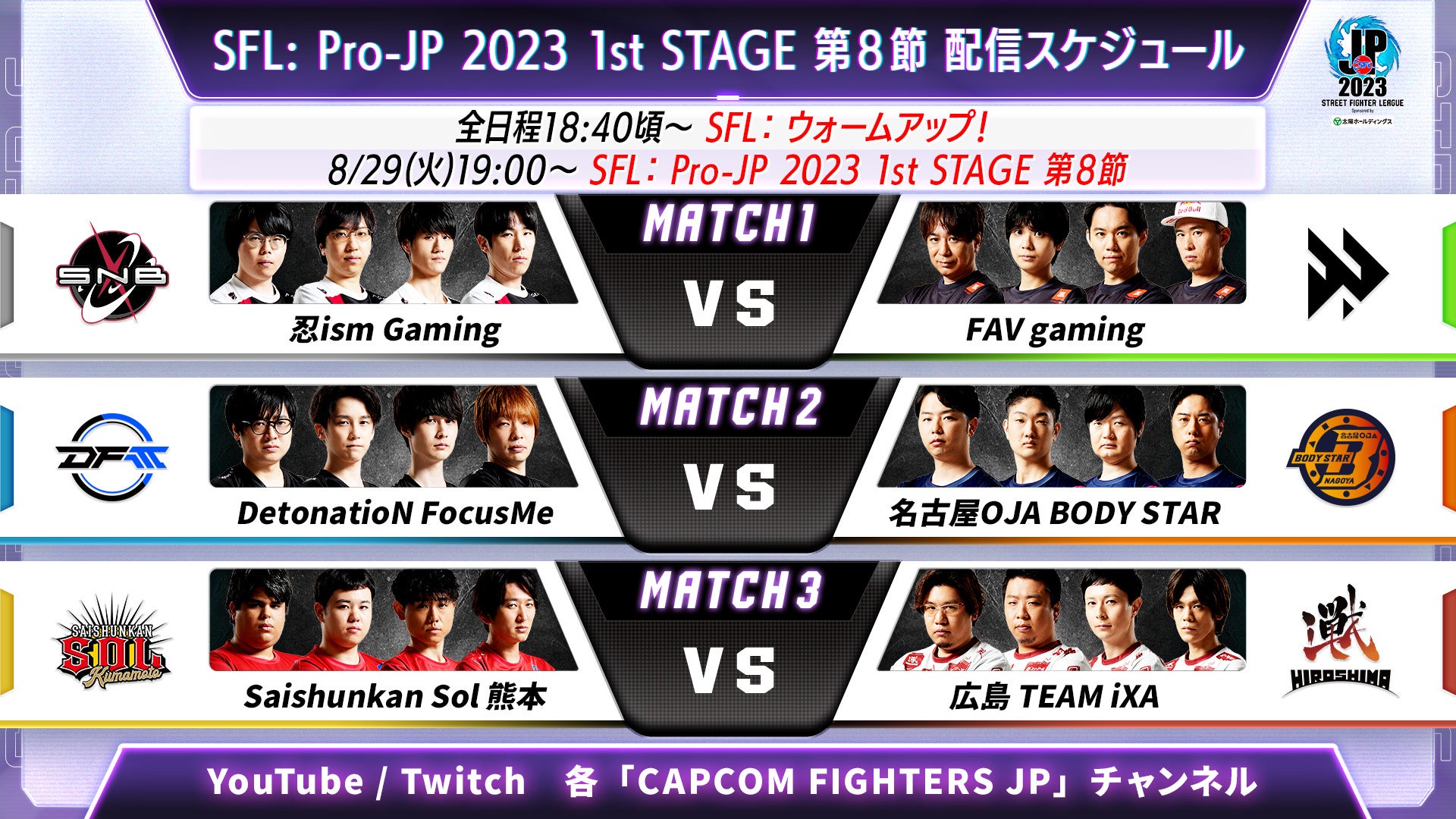 次回、「ストリートファイターリーグ: Pro-JP 2023」1stステージ 第8節は、8月29日(火)19時から「CAPCOM Fighters JP」の公式YouTube、Twitchチャンネルにて配信します。