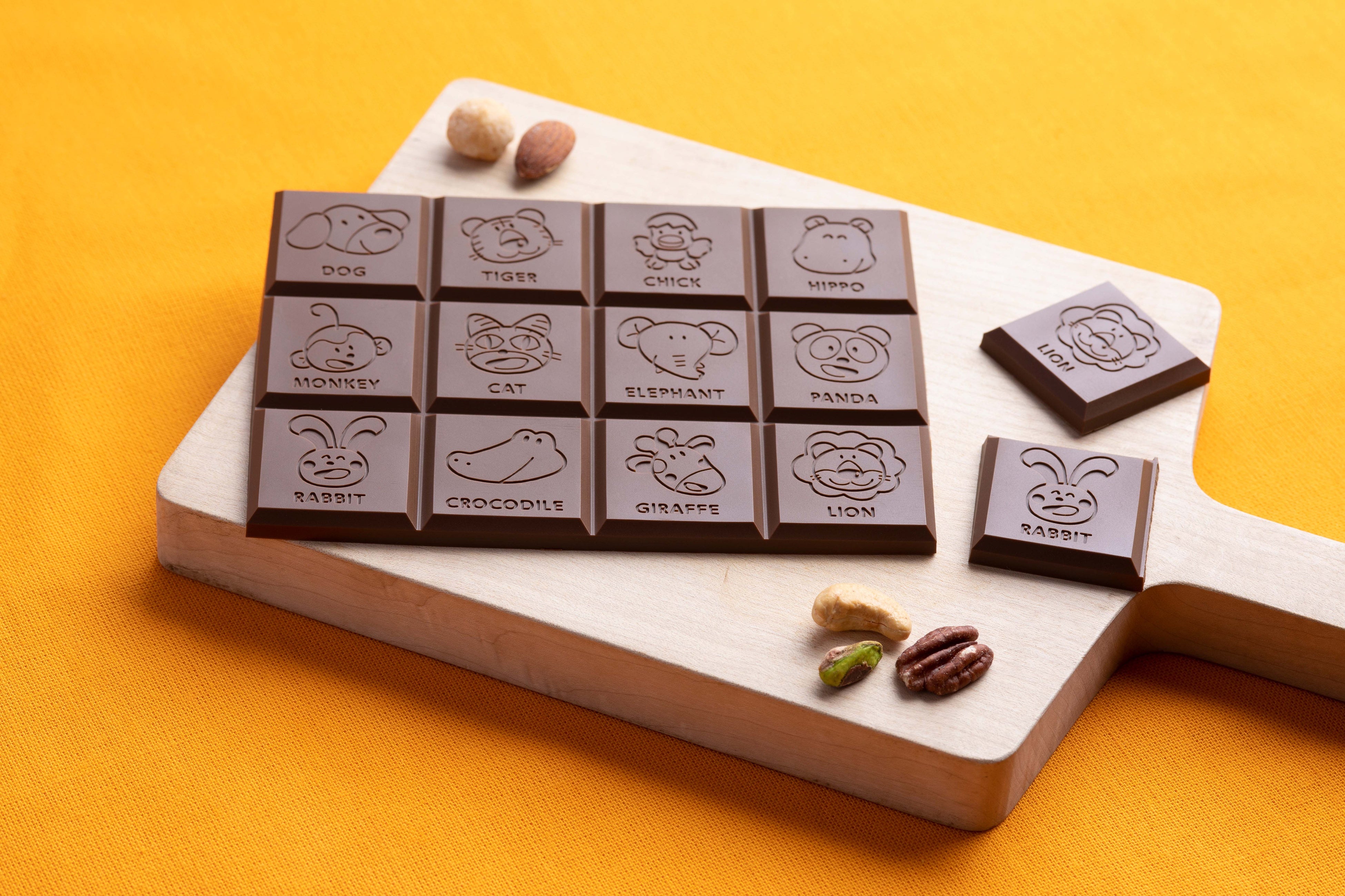 たべっ子どうぶつのパッケージに登場する9種類のキャラクターのチョコが作れるシリコーン型。