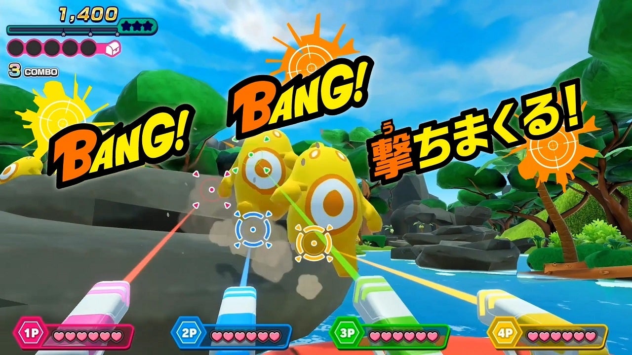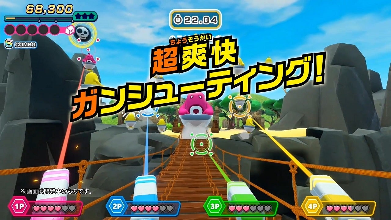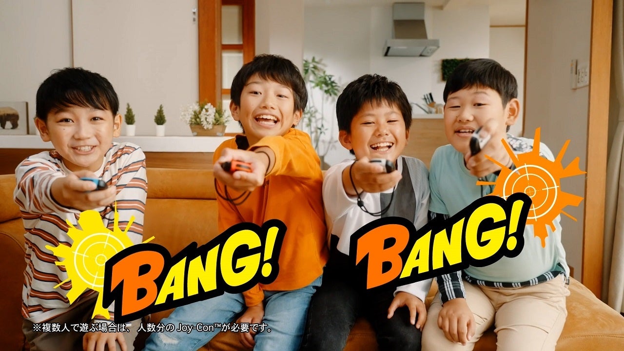 ゲーム試遊会では、Joy-Con™をハンドガンに見立てて、テレビの画面内に次々に現れる敵キャラを狙い撃ちし、一緒に遊ぶ人たちとスコアを競う、爽快ガンシューティングをお楽しみいただけます。 会場でゲーム試遊体験をしていただいた方には、オリジナルの缶バッチ(非売品)をプレゼントします。