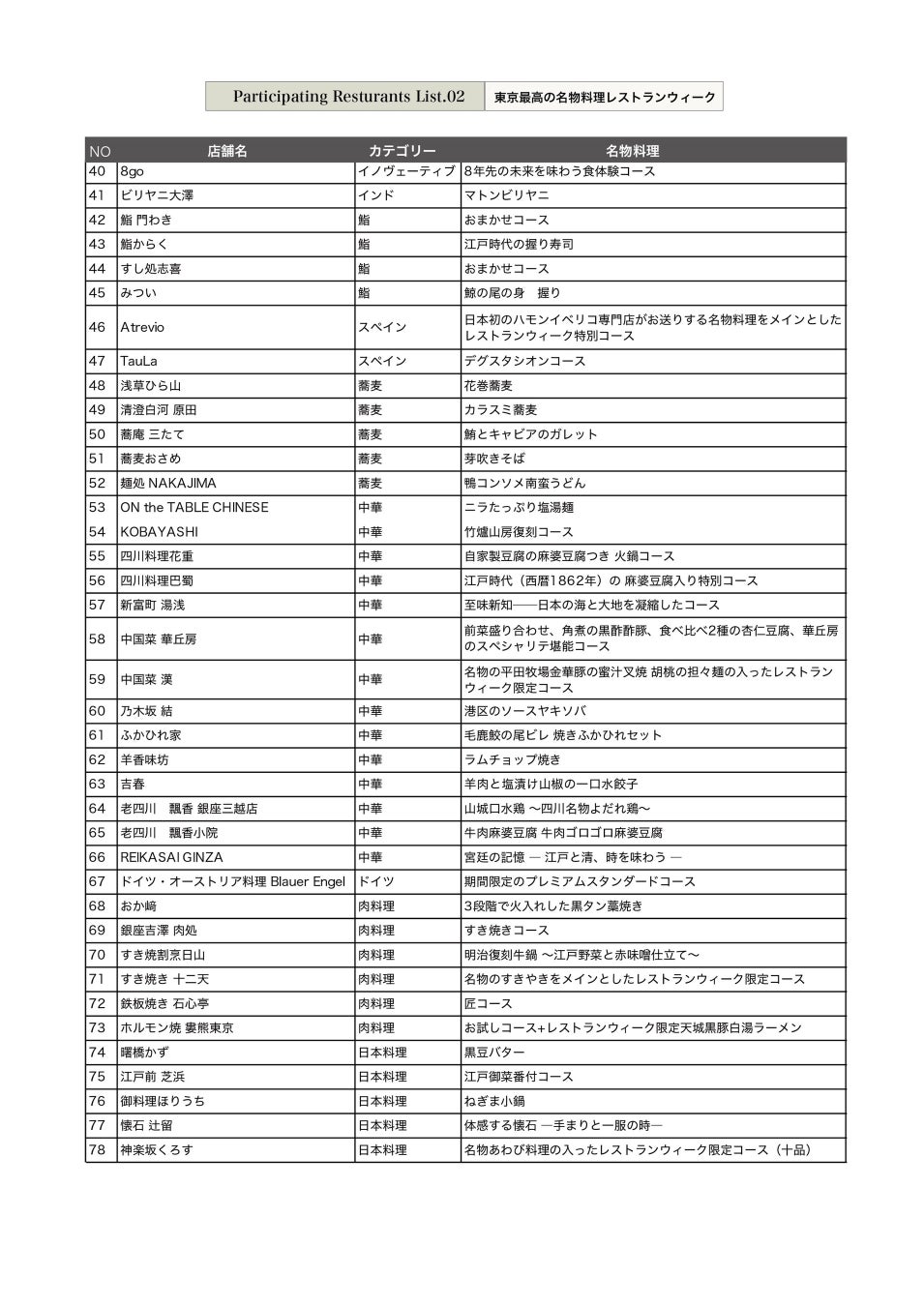 ・会場:東京都内の「東京最高の名物料理」認定レストラン 約110 店
