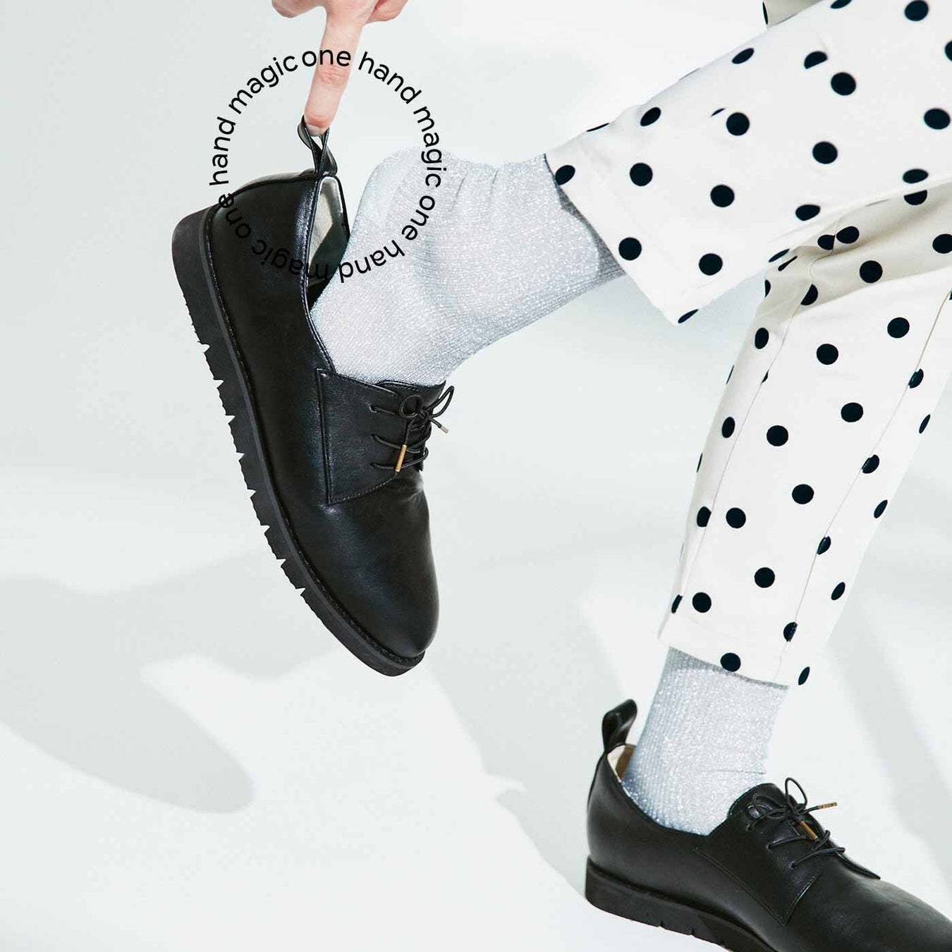・one hand magic 片手で履けるレースアップ風シューズ〈ブラック〉