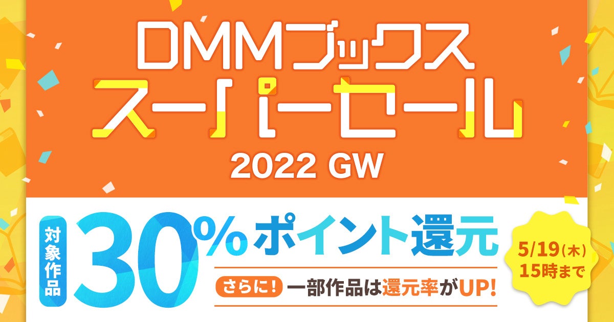 合同会社DMM.com(本社:東京都港区、会長 兼 CEO:亀山敬司 以下「DMM」)が展開する電子書籍サービス「DMMブックス」(https://book.dmm.com/)は、ユーザーの皆さまへの日頃の感謝を込めて「DMMブックス スーパーセール 2022 GW」を開催いたします。ほぼ全作品が30%のポイント還元となるほか、一部対象作品は50%のポイント還元を行います。