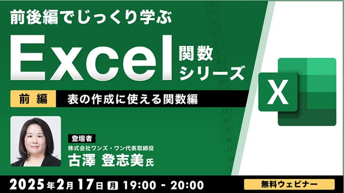 【中級者向け】“Excelのプロ”と演習をしながら学ぶ「表の作成に使える関数」!2/17(月)、2/25(火)無料セミナー「前後編でじっくり学ぶ、Excel関数シリーズ」開催