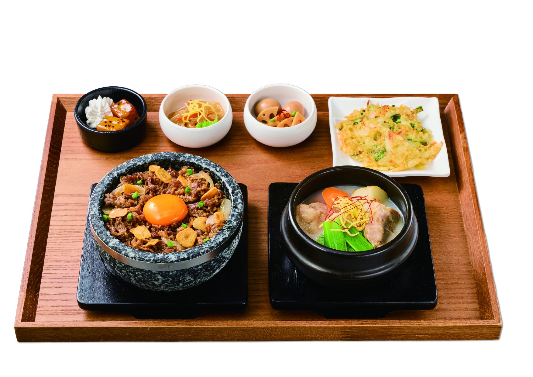 ガーリック香る牛カルビビビンバと、鶏肉の旨みが詰まったタッカンマリを両方楽しめる特別セット。