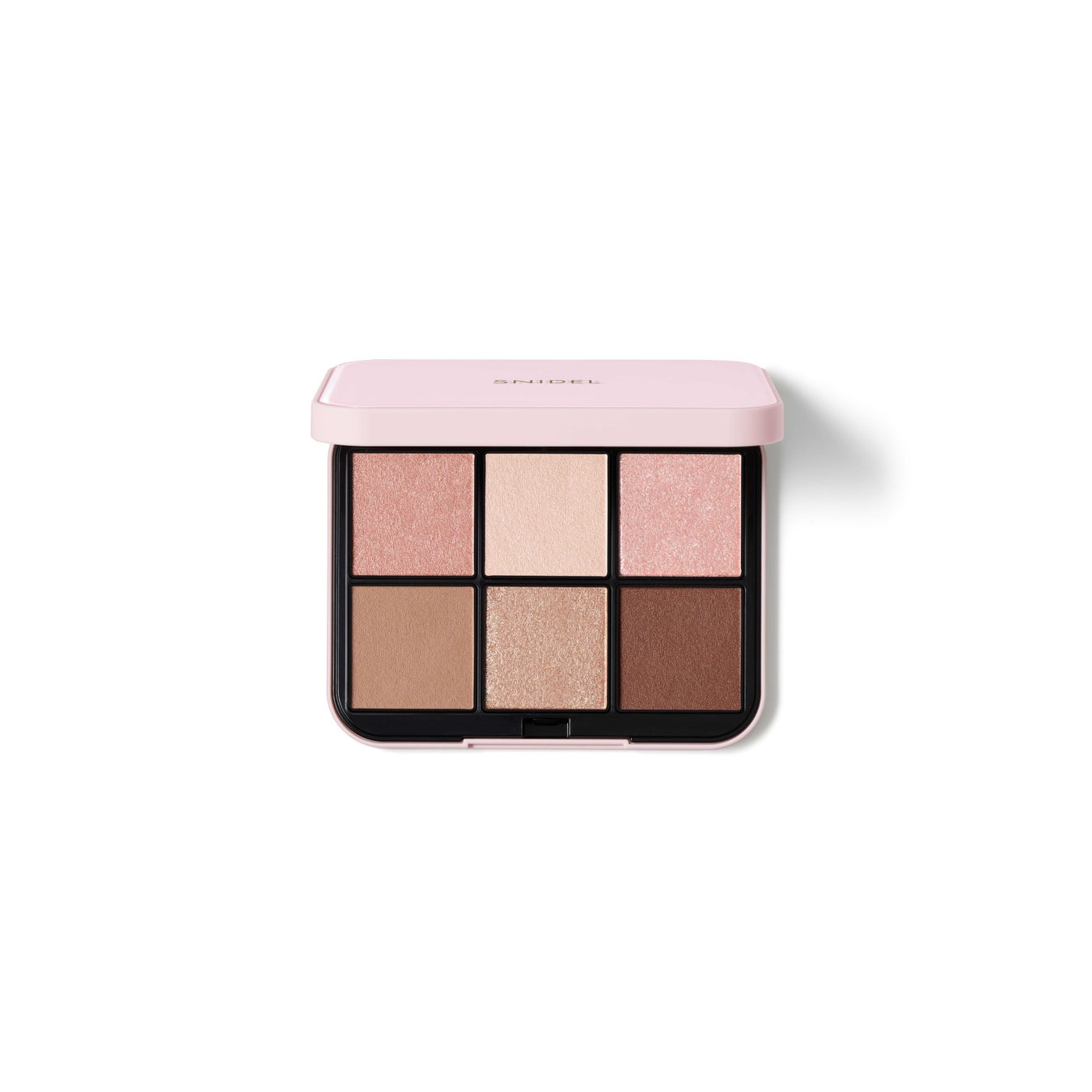 ブロッサムピンクとマットなアプリコットベージュが愛らしい目元を演出し、繊細なきらめきが透明感と奥行きを添える。