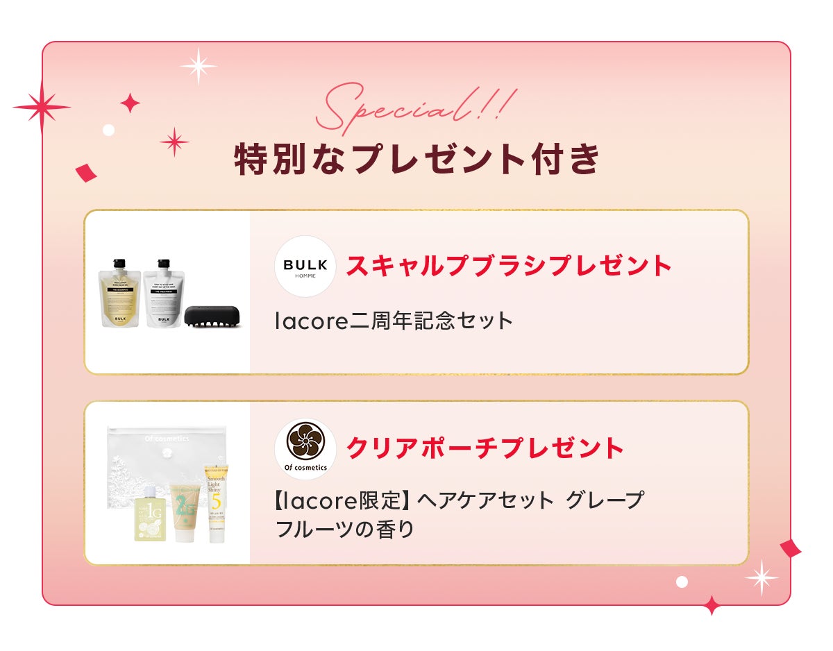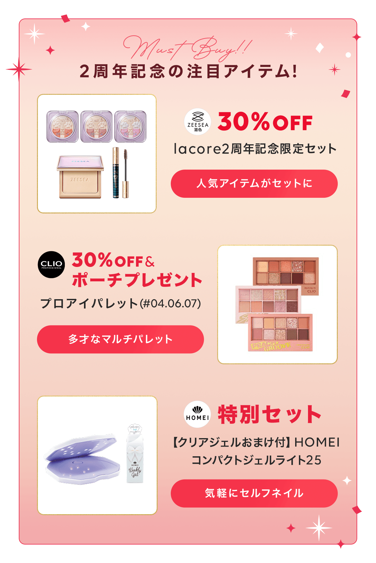 【今だけのチャンス!「lacore2周年記念セット」やお得なアイテム】