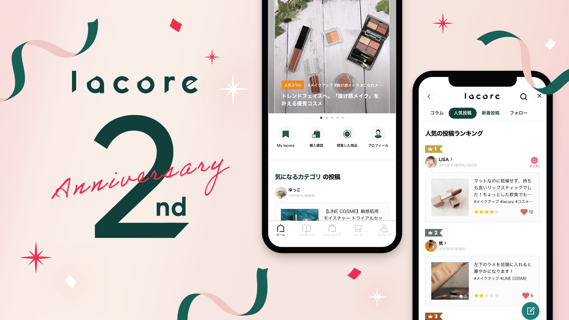 LINE株式会社(本社:東京都新宿区、代表取締役社長:出澤 剛)が運営する美容ポータルサイト「lacore(ラコア)」は、サービス開始から2周年を記念して、最大で半額相当分のLINEポイントが還元される『lacore2周年記念キャンペーン』を本日から8月15日(月)までの期間限定で開催することが決定いたしましたので、お知らせいたします。