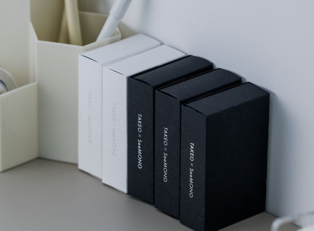 デスク上で端正にストックできる、シンプルなパッケージは「気包紙U-FS」と「黒気包紙U-FS」の2タイプの展開で、ケースのカラーだけでなく、中身の紙の50種の組み合わせも、それぞれ異なっています。合計100種類の紙が手元に届きます。