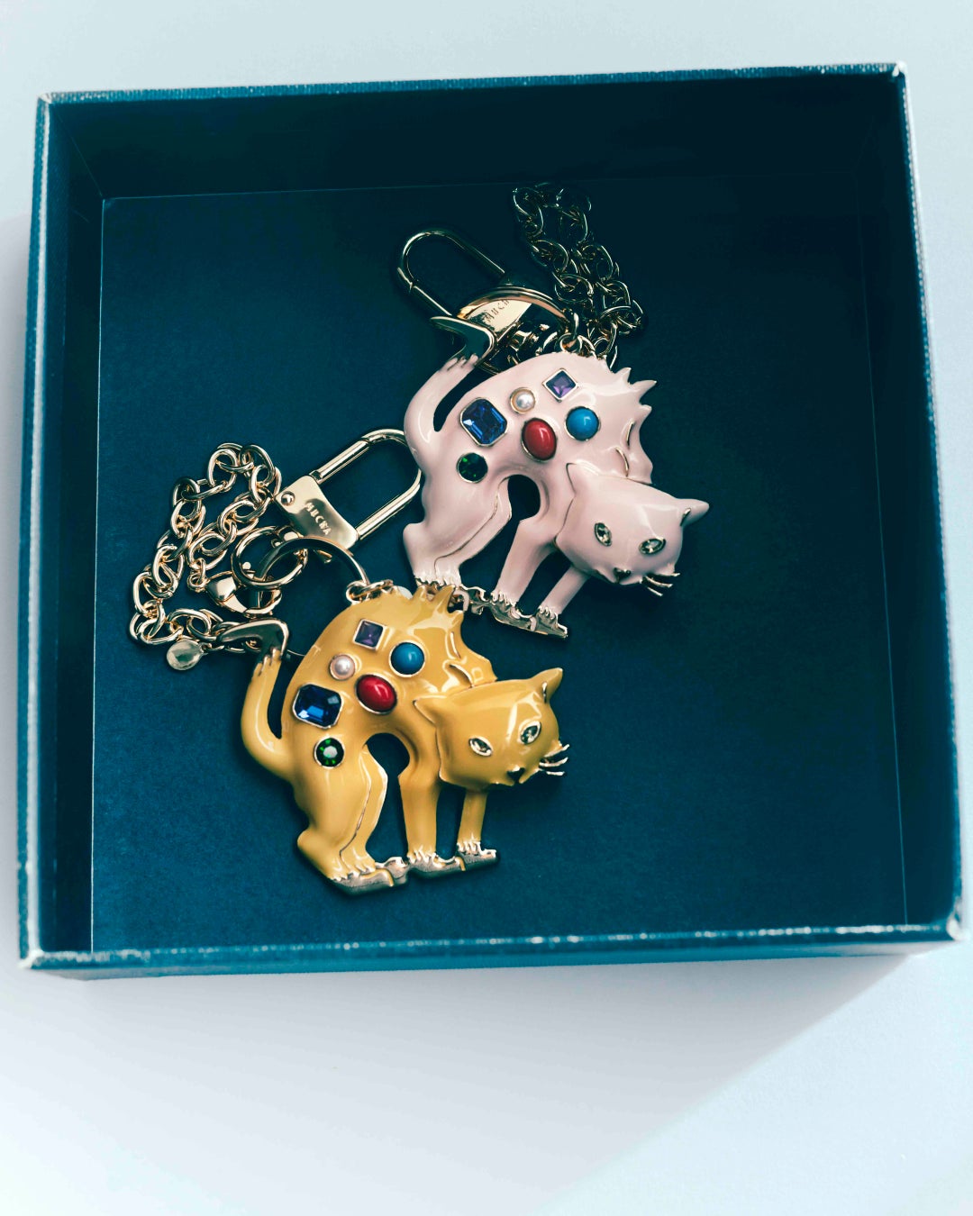 カラフルなバッグチャームやヘアアクセサリーなど、19世紀末パリの空気感を纏った美しくも気高い猫たちの意匠が揃う最新作