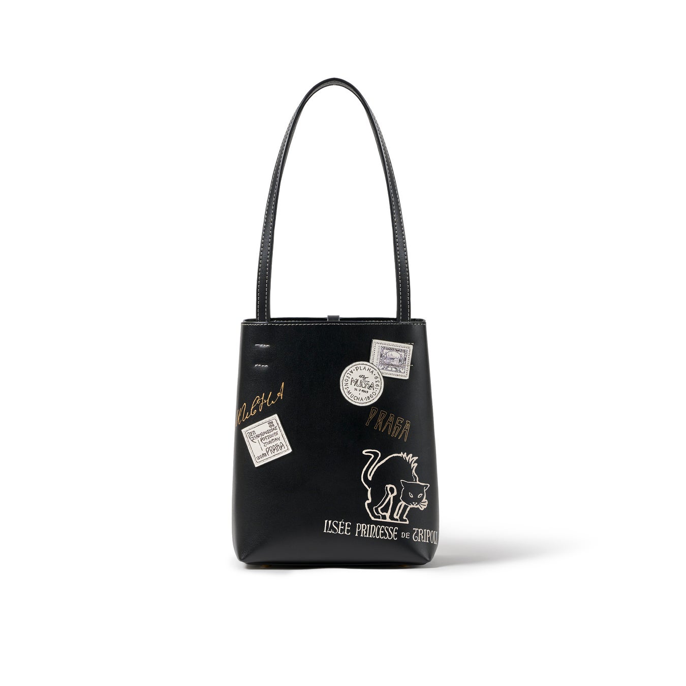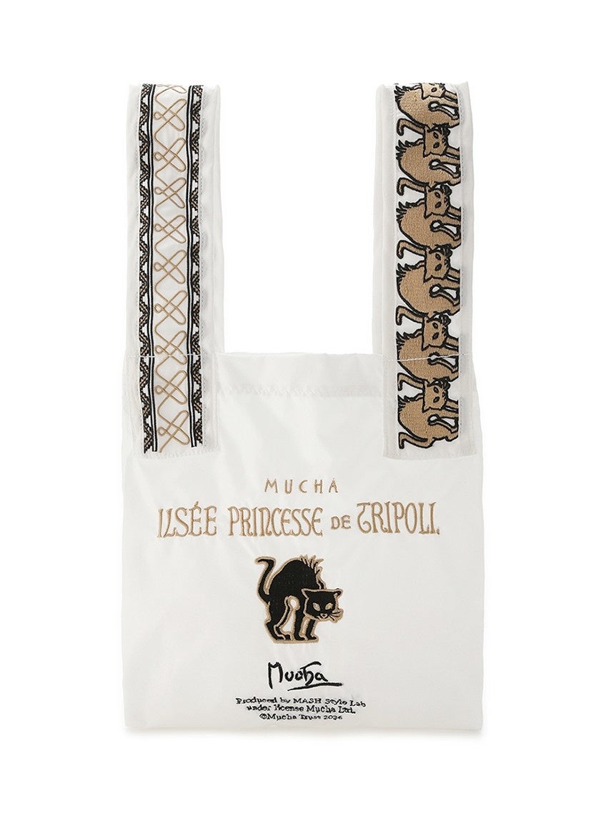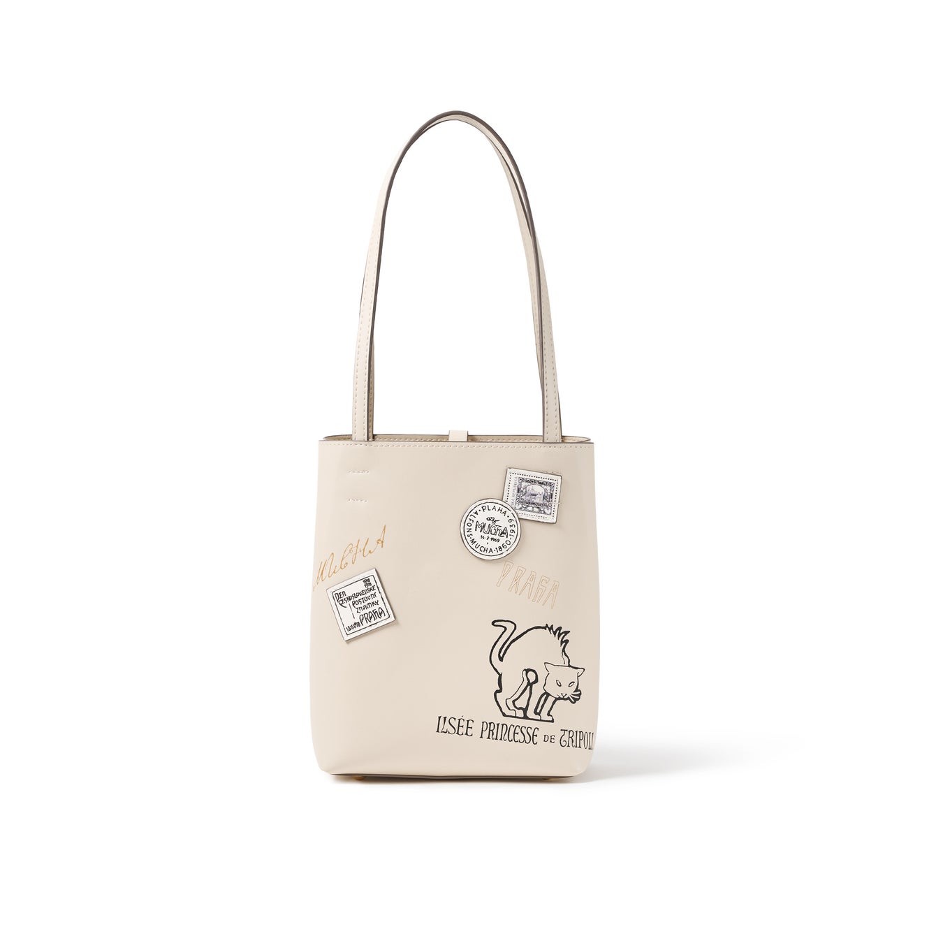 「トリポリの姫君イルゼ」から、挿絵に描かれた猫とミュシャが描いたスタンプデザインが目を惹くミニバックは大人のカジュアルスタイルに。高い収納力を備えたミニバッグは、スマートフォンや財布、ポーチが無理なく収まり、ちょっとしたおでかけに最適のサイズ感です。
