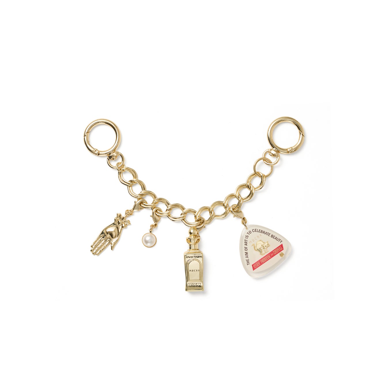 MUCHAのアイコンであるフレグランスボトルにラッキーチャームをミックスさせたブレス・キーチャーム。バッグチャームとして、またお好みでブレスレットとしてもお楽しみいただけます。