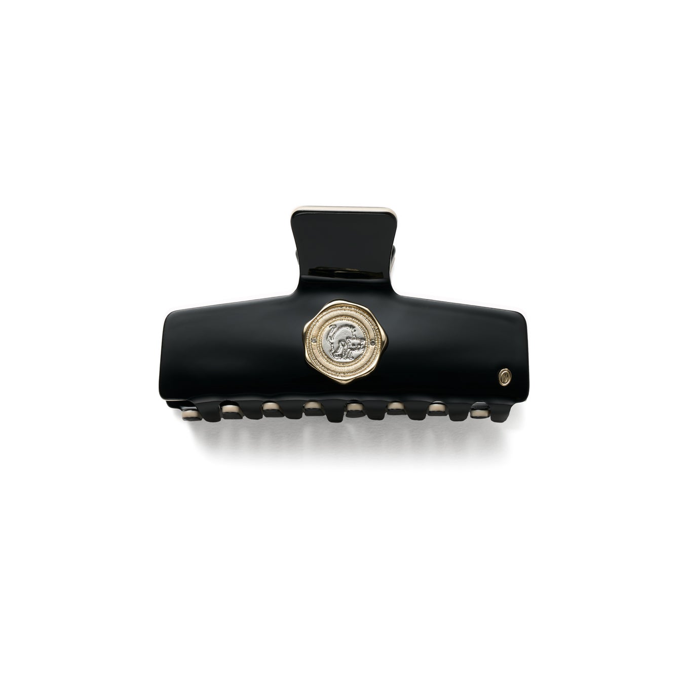 「トリポリの姫君イルゼ」から挿絵に描かれた猫をモチーフにシーリングスタンプ風のブローチを施したアセチ素材のヘアクリップ。ユニークな猫のシーリングスタンプがアクセントです。