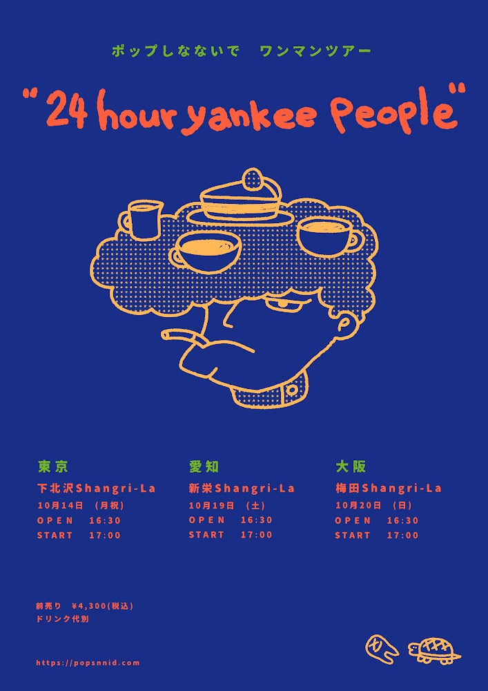 ポップしなないでは、ミニアルバムのリリースに伴い、全国3公演のワンマンツアー”24 hour yankee people”を開催。10月14日(月祝) 東京・下北沢Shangri-laを皮切りに、東名阪の3会場にて開催される。
