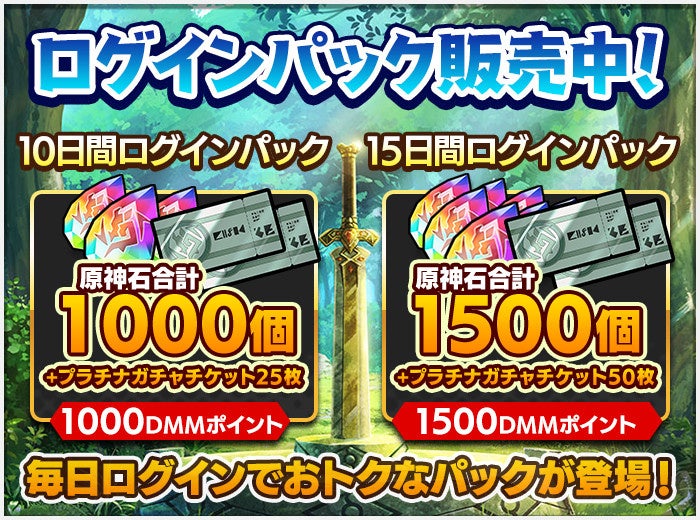 ※「10日間ログインパック」及び「15日間ログインパック」をそれぞれ重複して購入することはできません。どちらか一方のみ購入が可能となります。