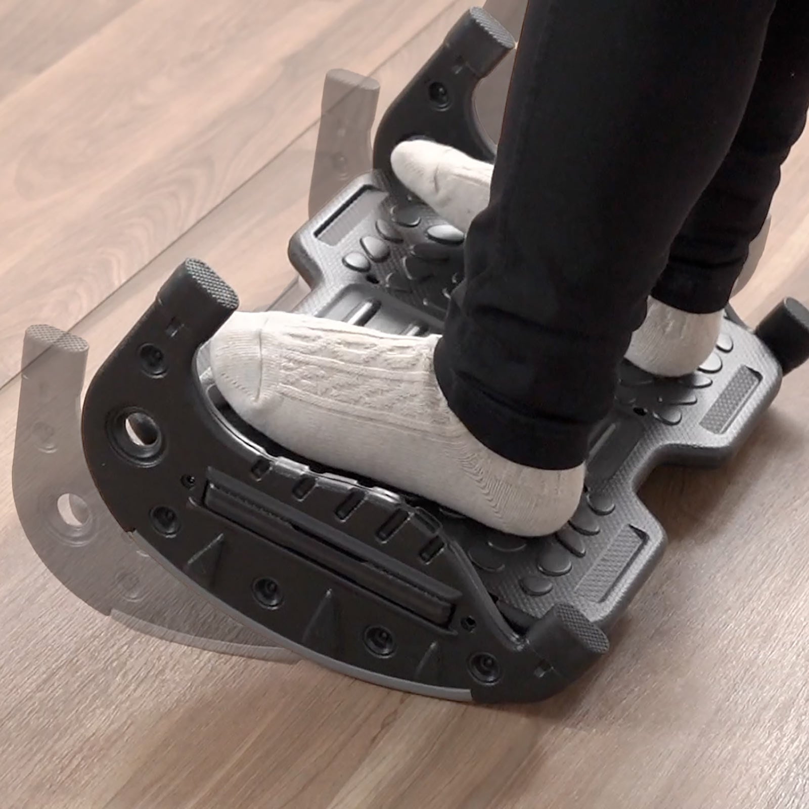 本製品は、利用シーンに合わせて2つの使い方ができるフットレストです。デスクワークに集中しやすくする角度固定モードと、足を前後に揺らしてリラックスできるゆらゆらモードを選べます。