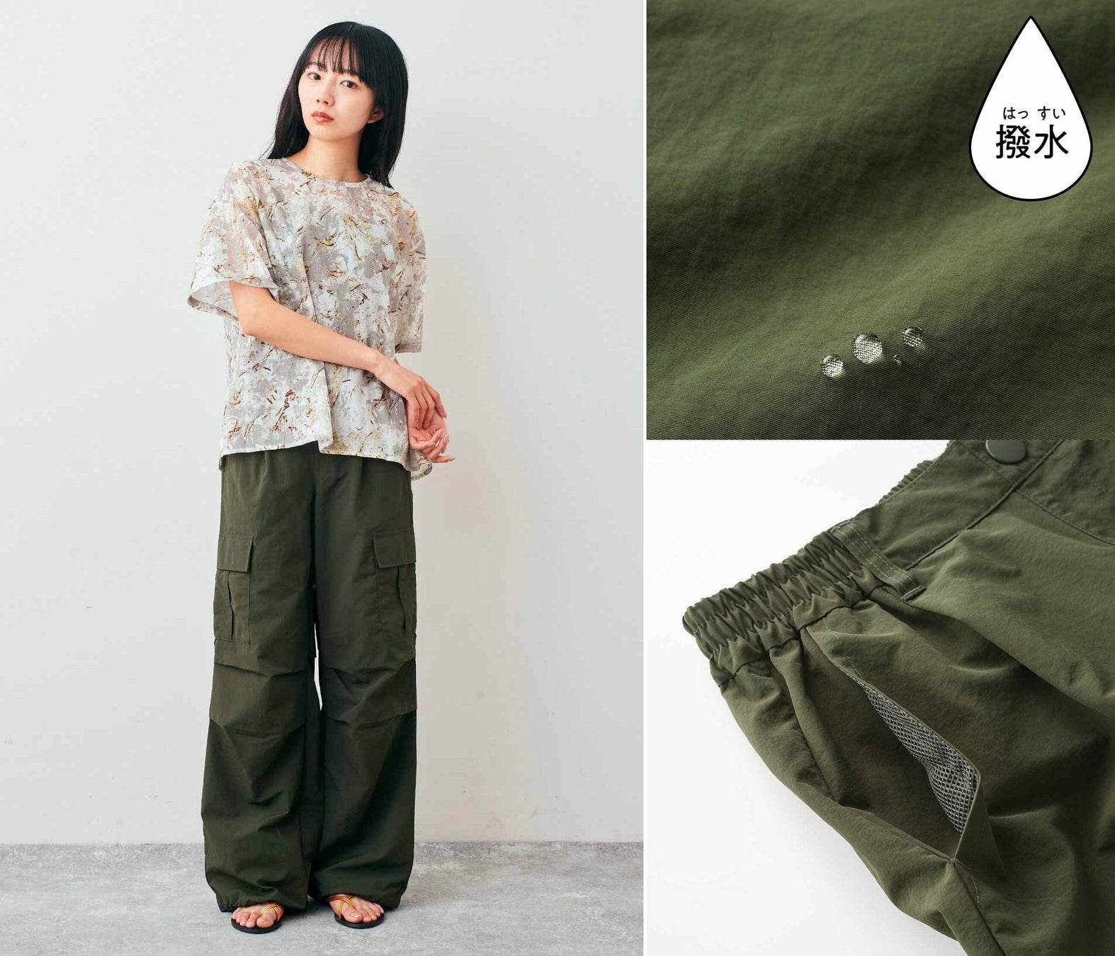 はくだけでコーデに表情が生まれるエアリーなカーゴパンツは撥水素材で旅行にも便利