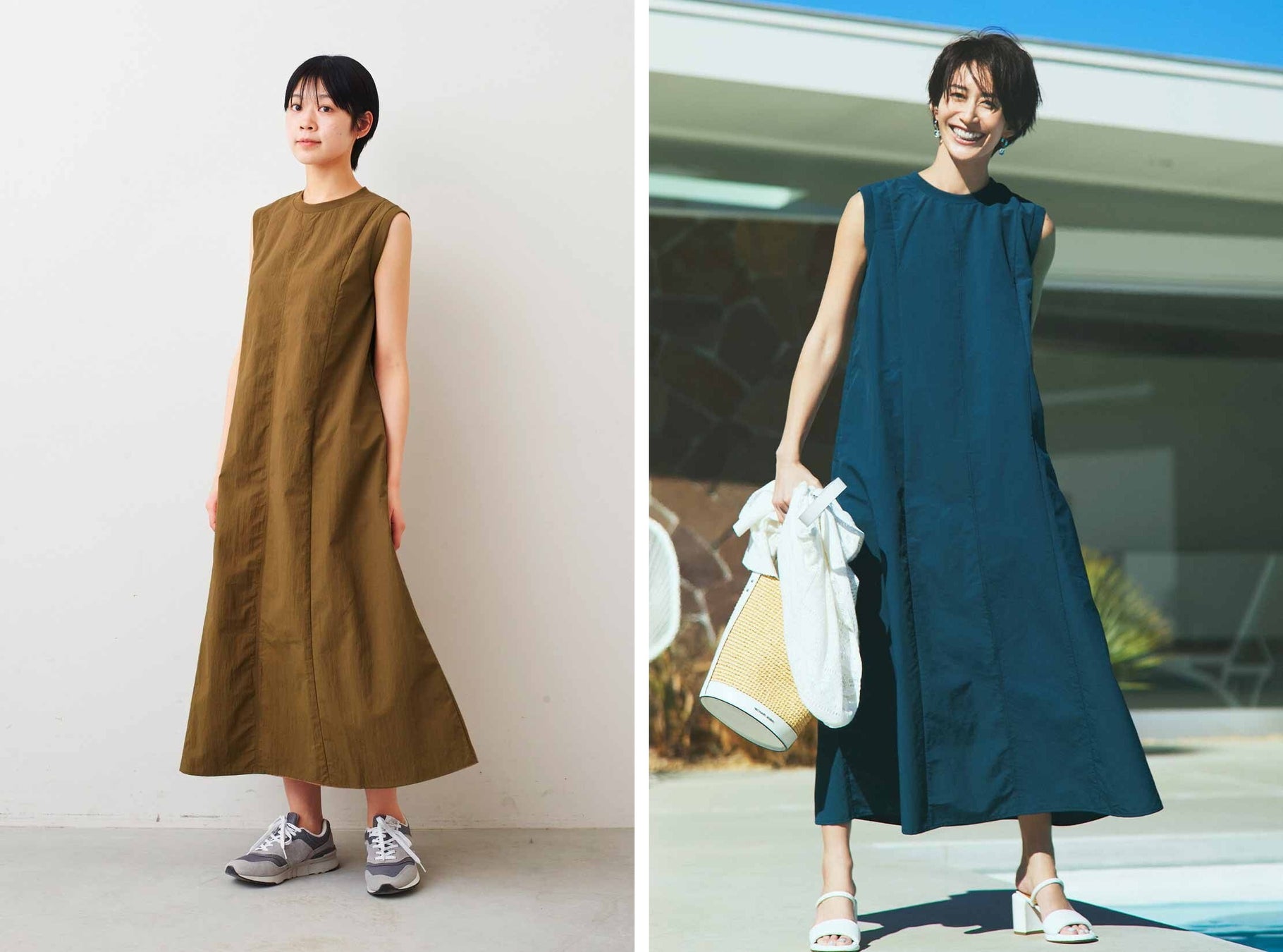【累計1万枚突破の撥水&防虫シリーズ新商品】美シルエットと高機能シャカ素材でカジュアルをアップデートしてくれて着回し抜群。虫も寄せ付けにくいノースリワンピ