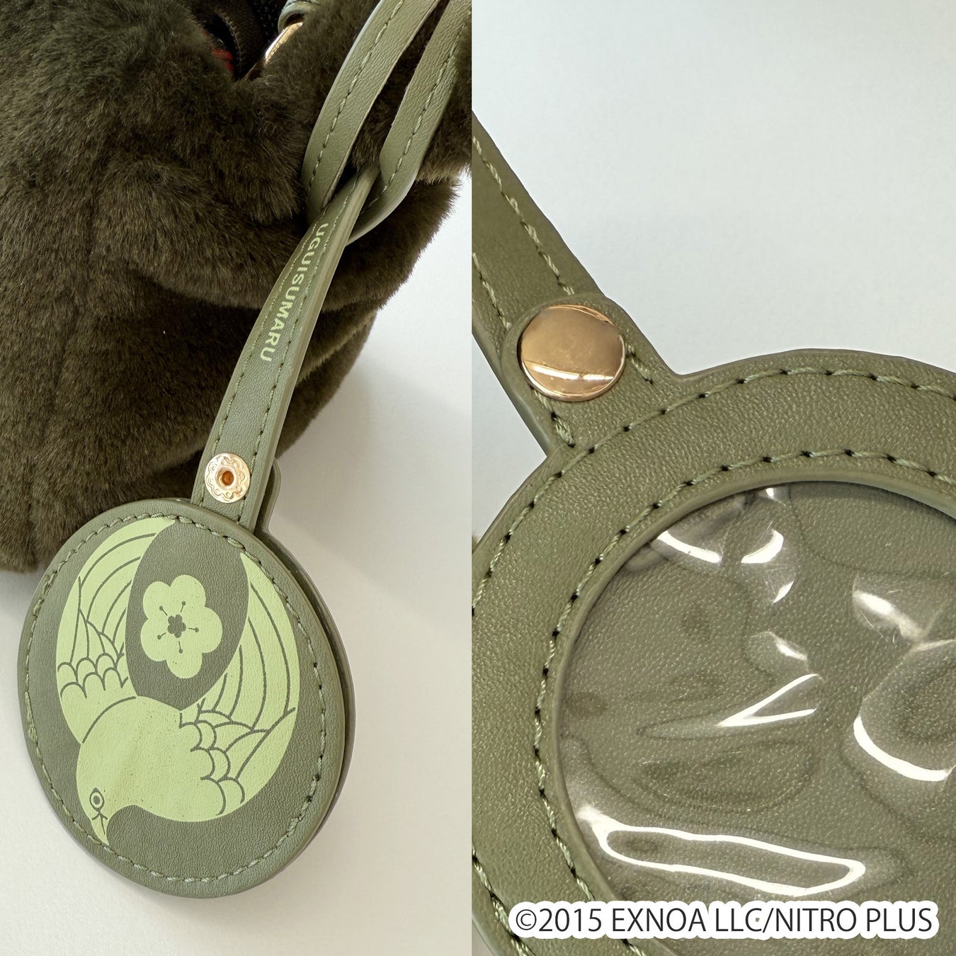 鶯丸をイメージした深い緑色を基調としたバッグです。鶯丸の刀帳番号である「55」「UGUISUMARU」のネームタグがポイント。