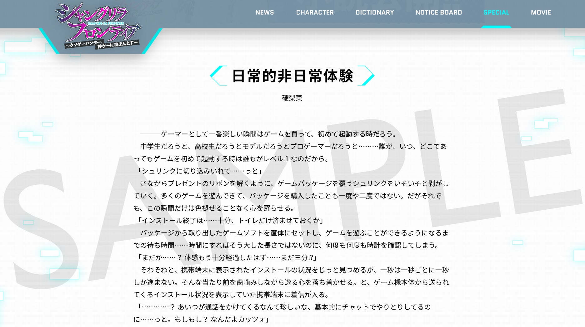 『シャングリラ・フロンティア』硬梨菜先生書き下ろし小説特設ページ