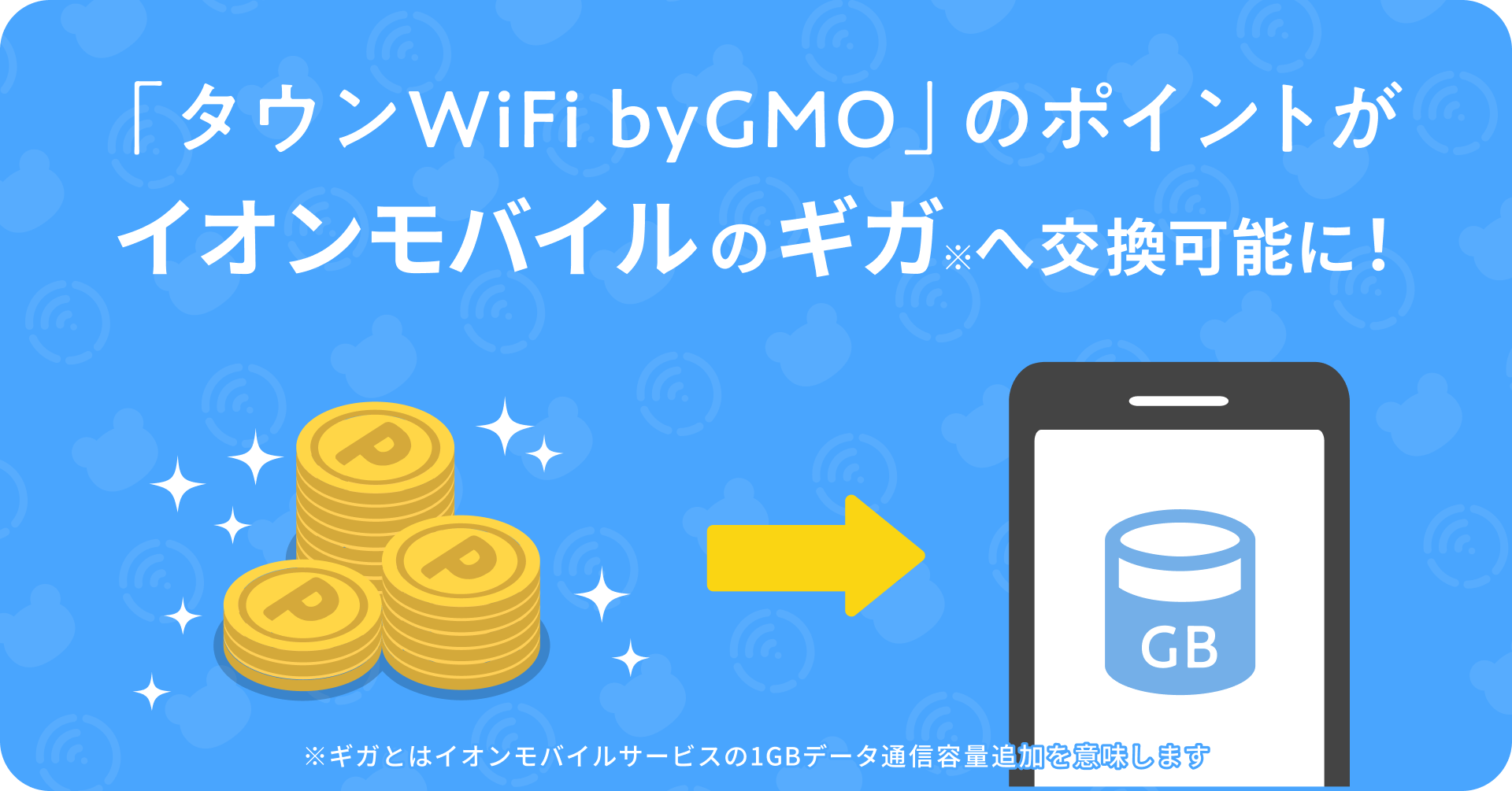 「タウンWiFi byGMO」のポイントで「イオンモバイル」高速データ通信容量の追加が可能になります