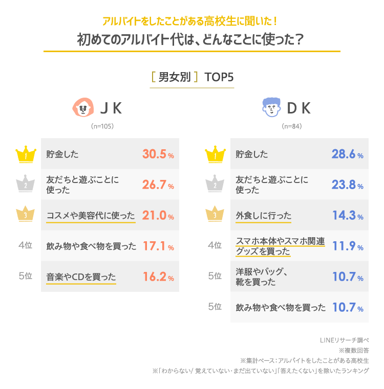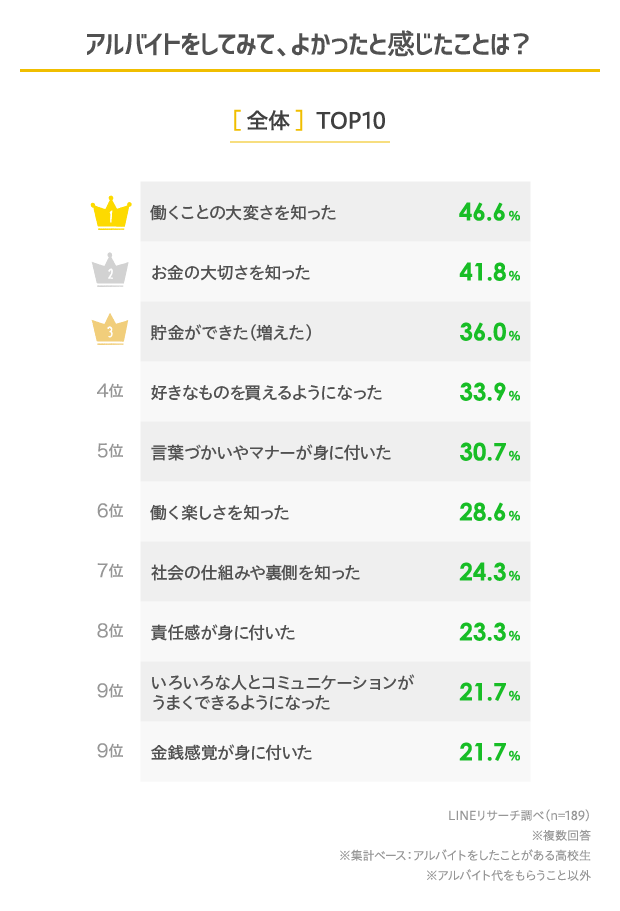 LINEリサーチ、全国の高校生を対象にアルバイトに関する調査を実施