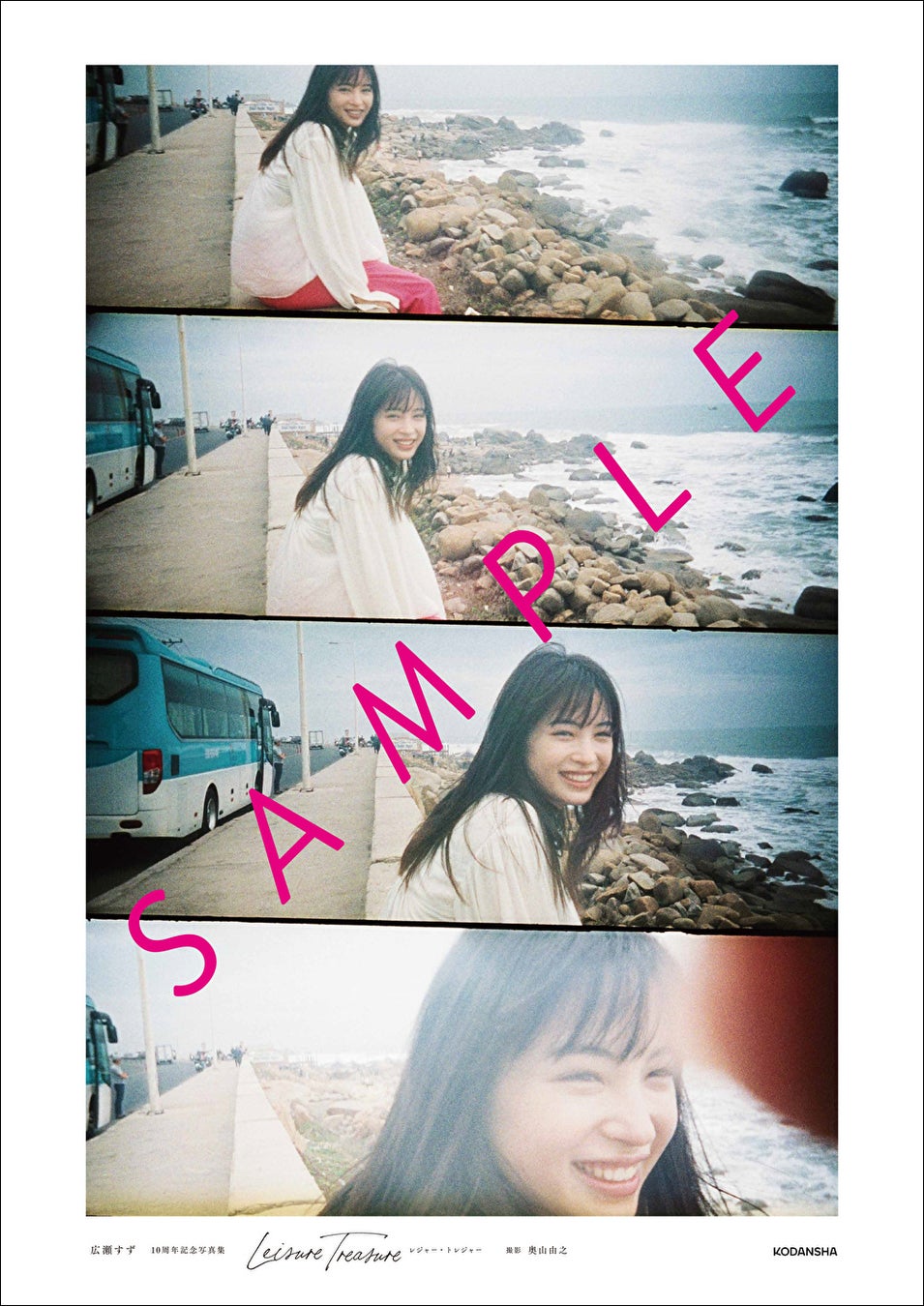 『広瀬すず 10周年記念写真集 レジャー・トレジャー』の発売を記念して、特製ポスターの制作決定! 絵柄は全部で4種類。1つの絵柄につき、ポスターを100名様にプレゼントします。