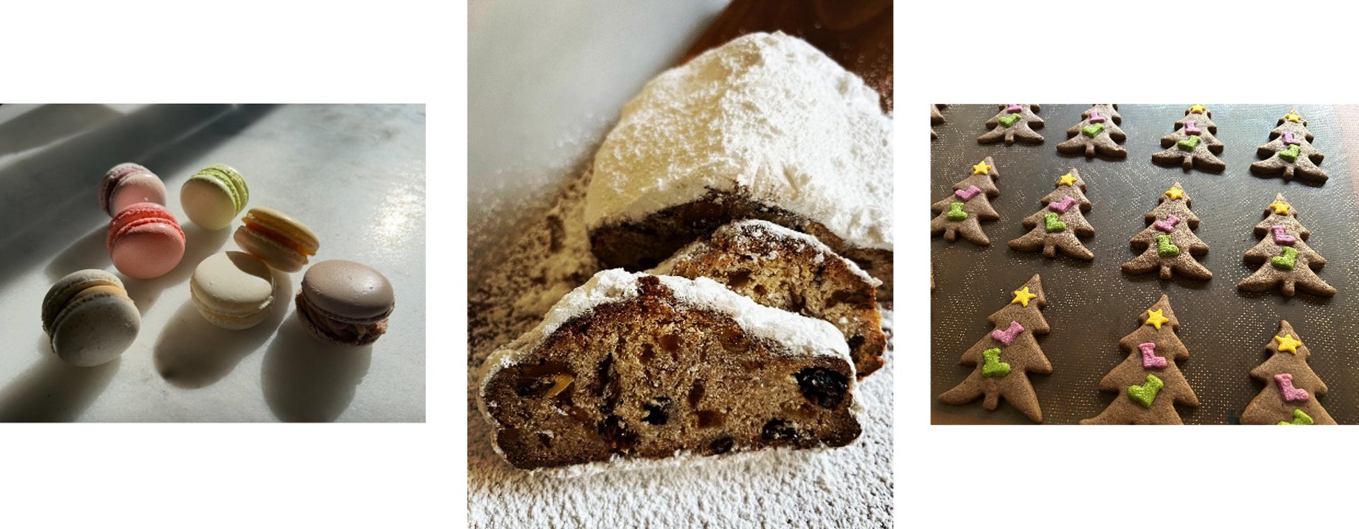 クリスマスクッキーやマカロンの皮も、着色料ではなく、野菜の粉による自然な色を活かして焼き上げています。