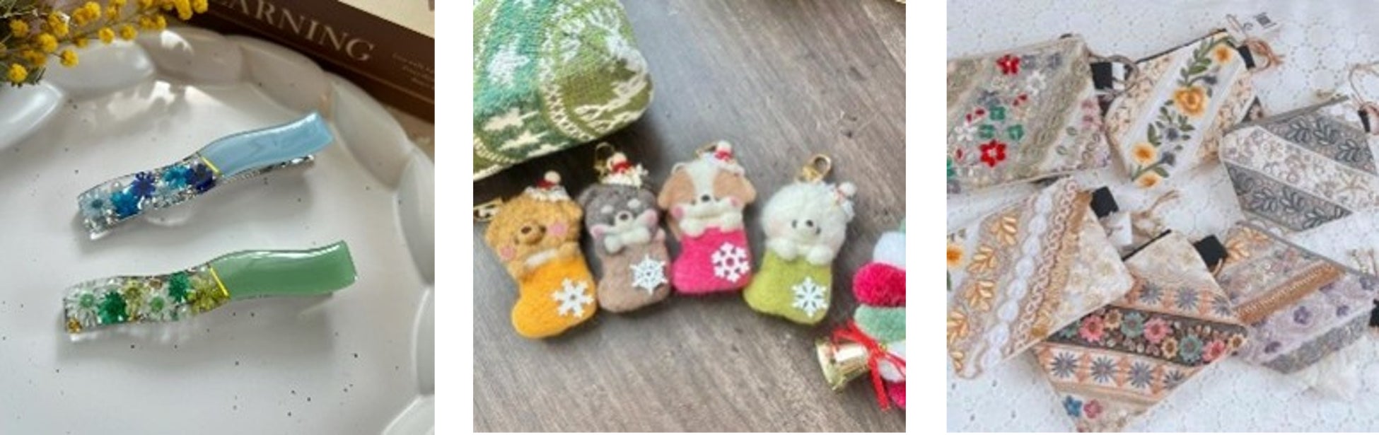 大切な方への贈り物としてはもちろん、ご自身への小さなご褒美にもお選びいただける作品ばかりです。手仕事ならではのあたたかさと、ときめきを感じていただけましたら幸いです。クリスマスの季節を一緒に楽しみながら、皆さまとの出会いを心よりお待ちしております。