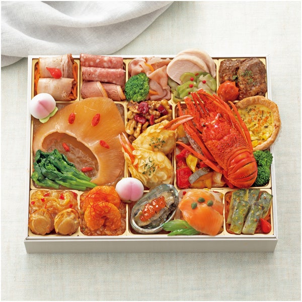 【商品特長】伊勢海老やふかひれ姿煮を中心に、洋風と中華風のごちそうを盛り込んだ大人向けの豪華なオードブルです。