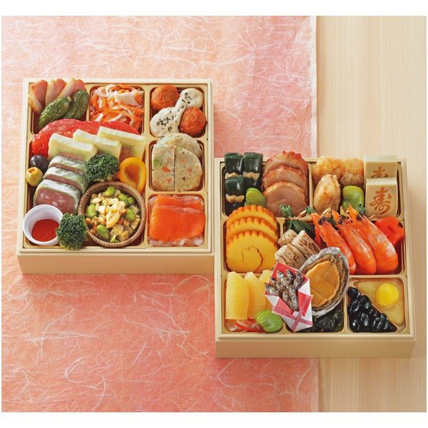 【商品特長】海洋深層水、天然塩、酒、みりん、醤油に至るまで、食品添加物を使わずにこだわり抜いて仕上げ た“唯一無二”の二段重の逸品です。素材本来の懐かしい味をお楽しみいただけます。