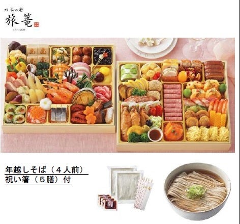 【商品特長】兵庫、有馬の宿「旅篭」監修のイオンオリジナル商品です。大人から子どもまでが大満足の和・洋・中の食材を彩り鮮やかに盛り付けた豪華なおせちです。年越しそば・つゆ、祝い箸が付き、大晦日から楽しめます。