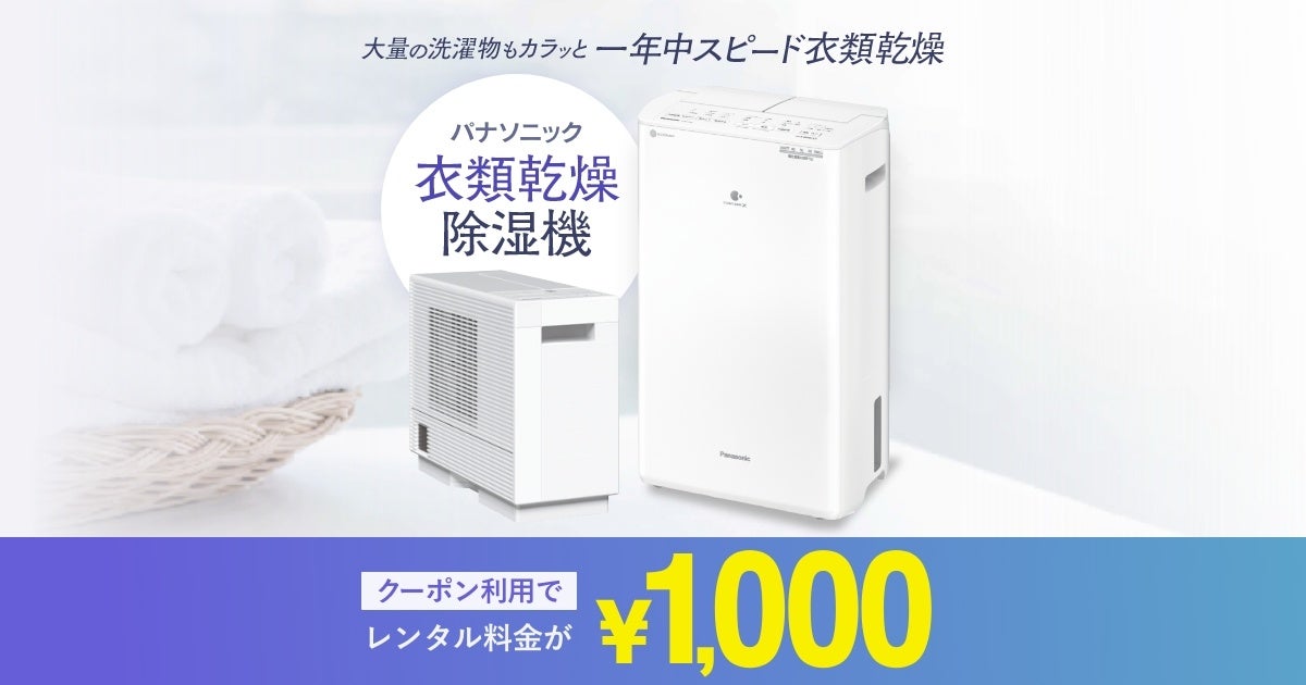 【DMMいろいろレンタル】パナソニックの最新衣類乾燥除湿機が3,200円OFF!8日間1,000円でレンタルできるキャンペーンを実施!