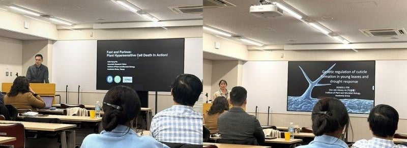 本ワークショップでは、午前中に資源植物科学研究所の学生による研究発表セッション、午後に台湾研究者による講演セッションが行われ、教員、学生、職員、コーディネーター(産学連携・学術研究)など約40人が参加しました。