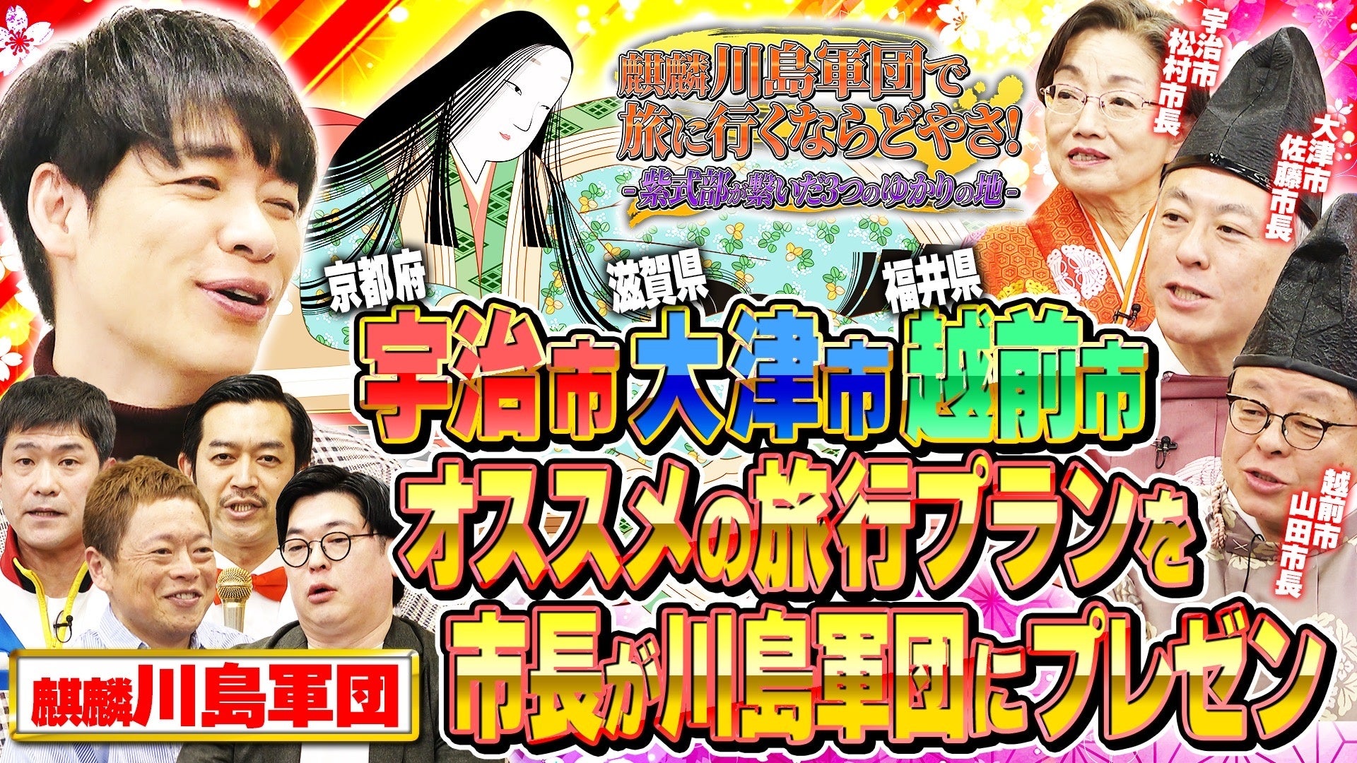 川島の20年来の夢が叶う!? 紫式部ゆかりの地の市長が集まり、プレゼン合戦!『麒麟川島軍団で旅に行くならどやさ!~紫式部が繋いだ3つのゆかりの地』3月23日(日)11:30放送