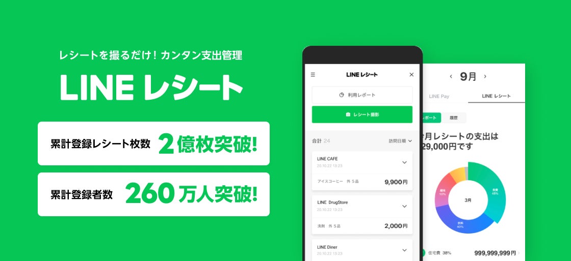レシートを撮影するだけで簡単に支出管理ができる「LINEレシート」、サービス提供開始から1年7か月で、累計登録レシート枚数2億枚、累計登録者数260万人突破