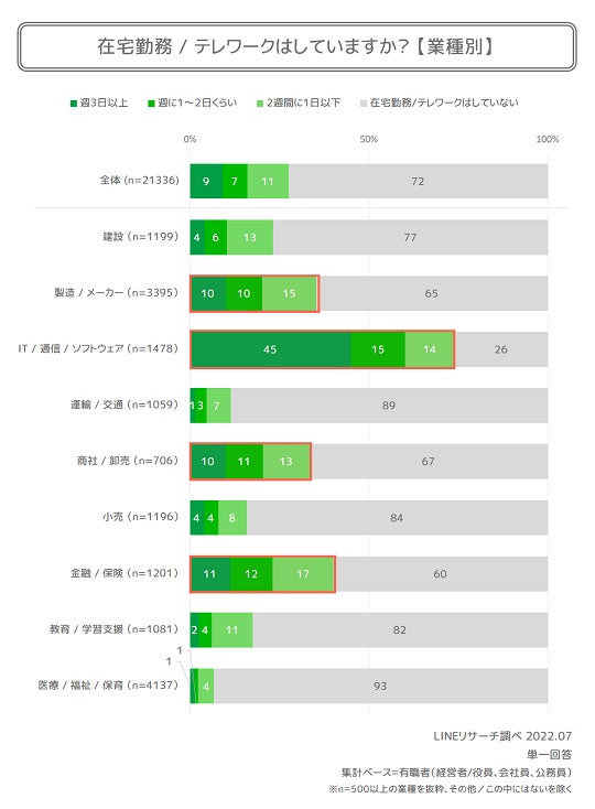 ■「在宅勤務はしていない」が7割超、IT関連は他の業種より在宅勤務・テレワークの割合が高い傾向