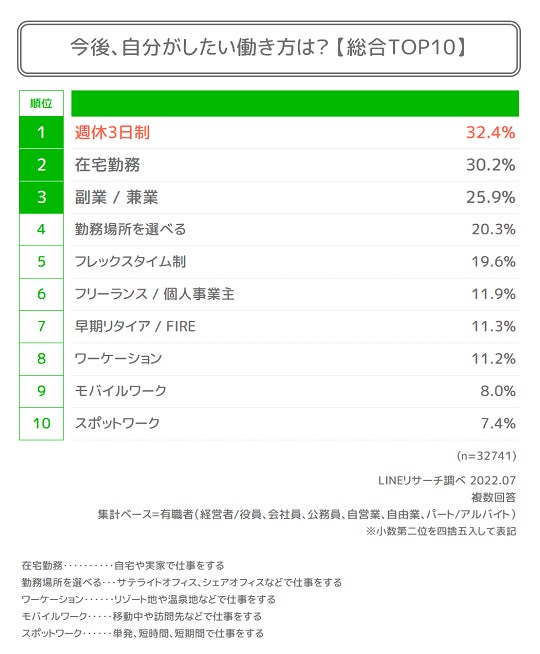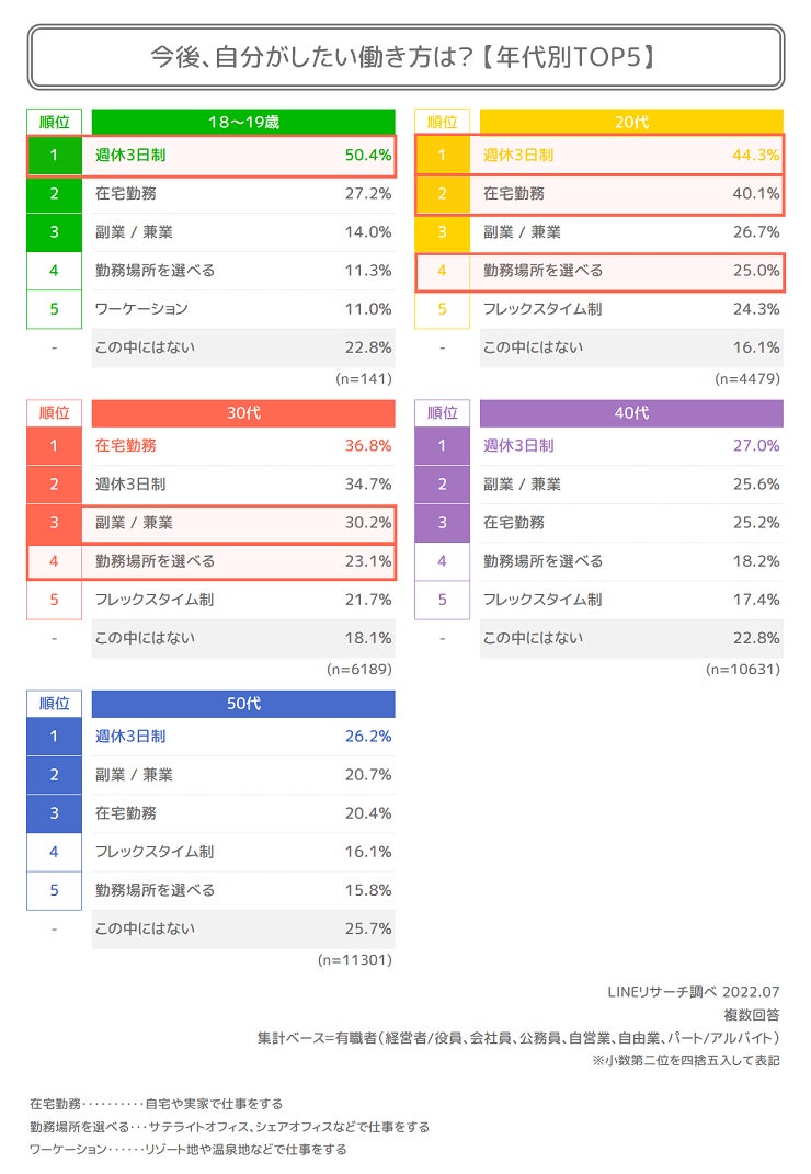【LINEリサーチ】コロナ禍での働き方への意識、10代では6割超が「変わった」と回答 今後したい働き方は「週休3日制」「在宅勤務」が上位に