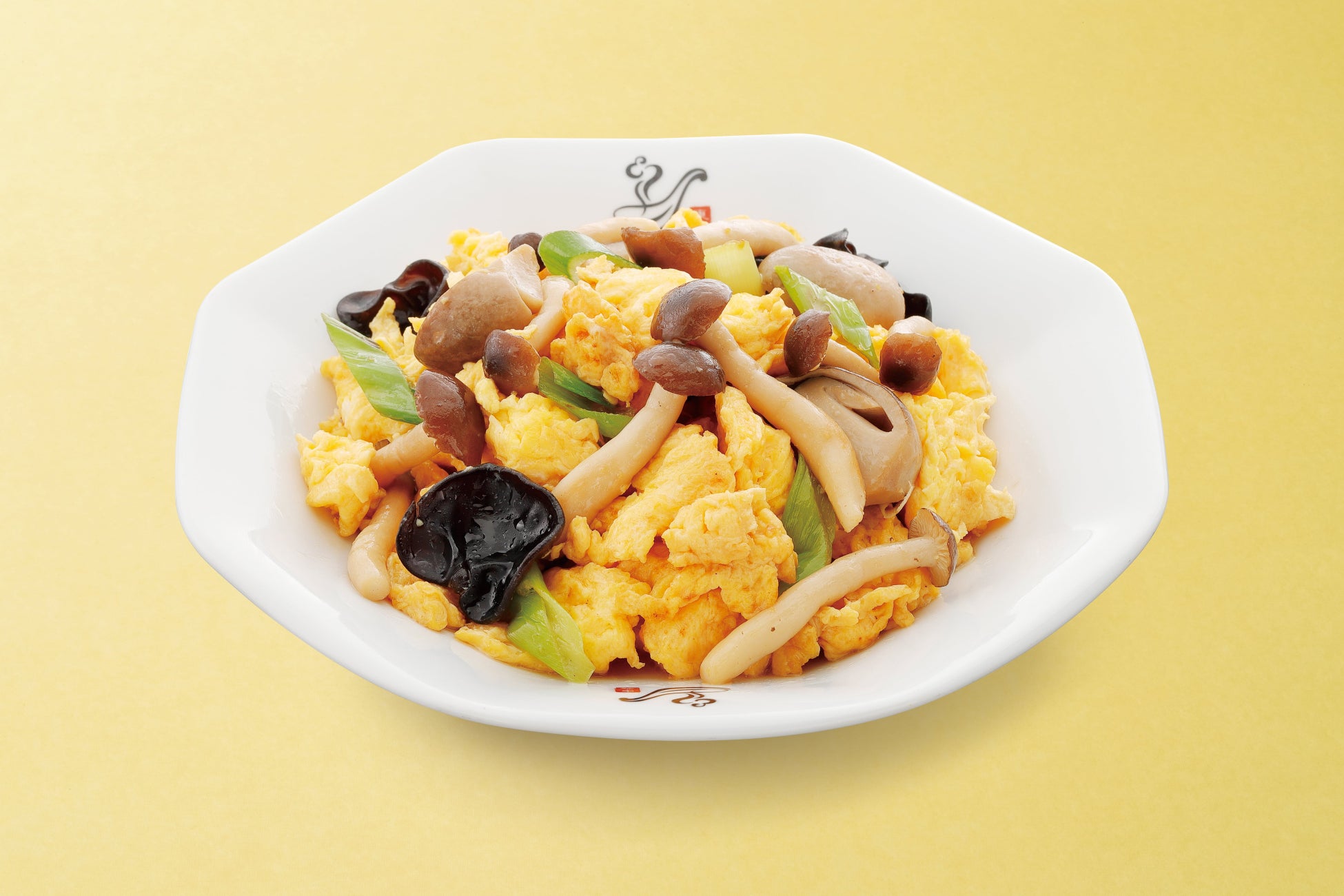 熱々のきのこあんは、ぶなしめじ、ふくろ茸、しいたけ、きくらげ、エリンギの5種のきのこを使用。醤油ベースのオイスター風味のタレで仕上げました。きのこの食感を楽しみながら、ゆっくりお召し上がりください。ぶなしめじ、ふくろ茸、きくらげの3種のきのこを使用したビールのおつまみや追加の一品にちょうどいい「玉子ときのこ炒め」もご用意しております。