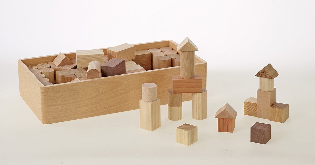 商品内容:ビーチ(ぶな)・ホワイトオーク(なら)・ホワイトアッシュ(たも)・ブラックウォールナット(くるみ)・ヒノキ・スギの6種類の木材を使い、円柱・半円柱・三角柱・立方体・直方体の積み木をセットにしました。積み木として遊ぶ以外に、音や触り心地など質感を感じ取り、同じ木材が身近などんなものに使われているかを体感する機会づくりにも適しています。同じ大きさの木片が、こんなにも重さもにおいも色味も異なることに、驚きと感動を覚えることでしょう。