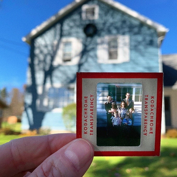 彼女のお父さんが1950~60年代にポジフィルムで撮影した家族の日常風景を、娘のCatherineさんが、かつて撮影されたまさに同じ場所に「お父さんの写真」を重ね合わせて撮影した写真をまとめたもの。