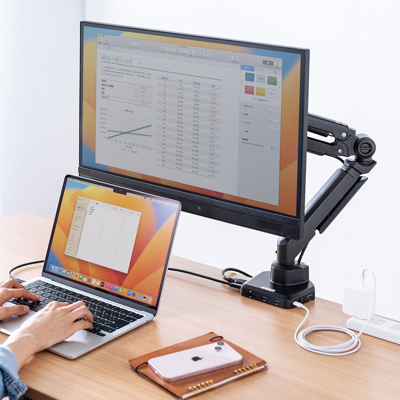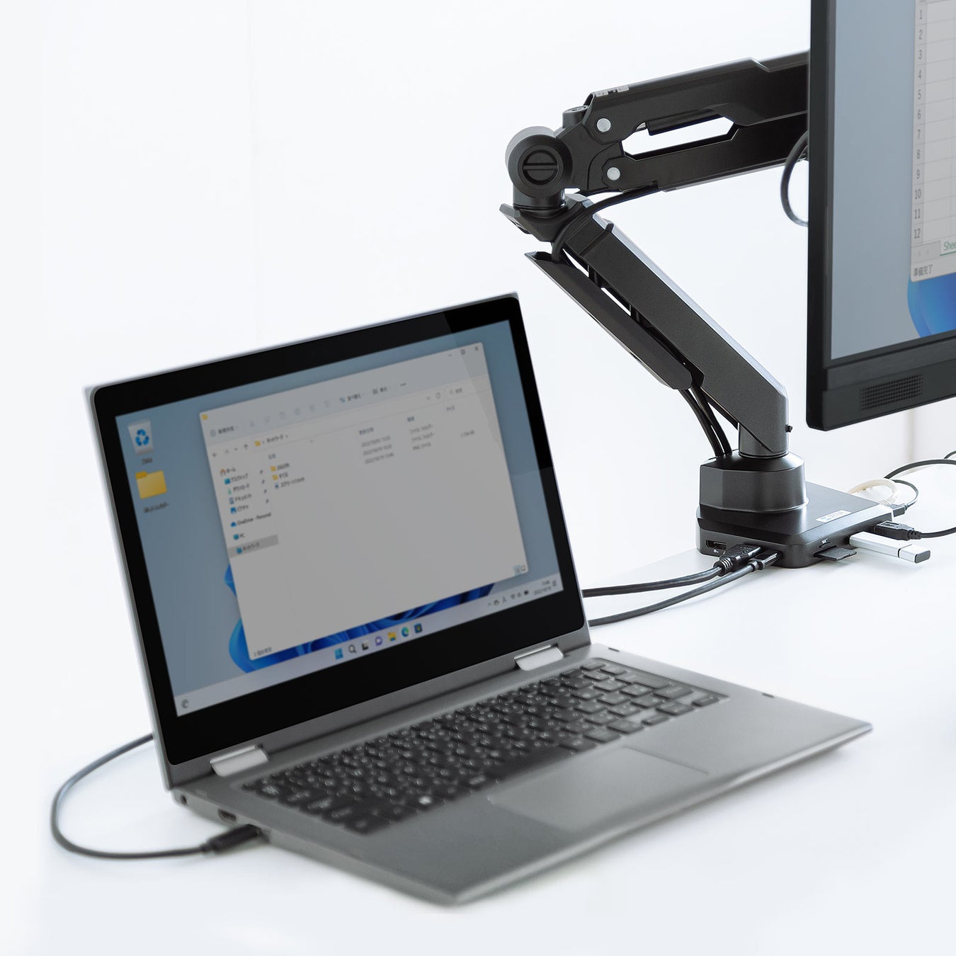 一台二役!ベース部にドッキングステーションを内蔵した一体型モニターアームを1月24日に発売