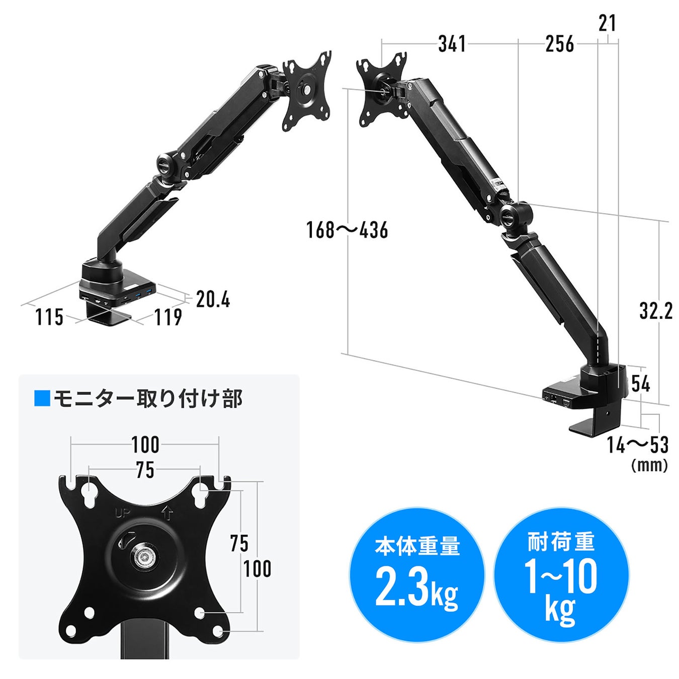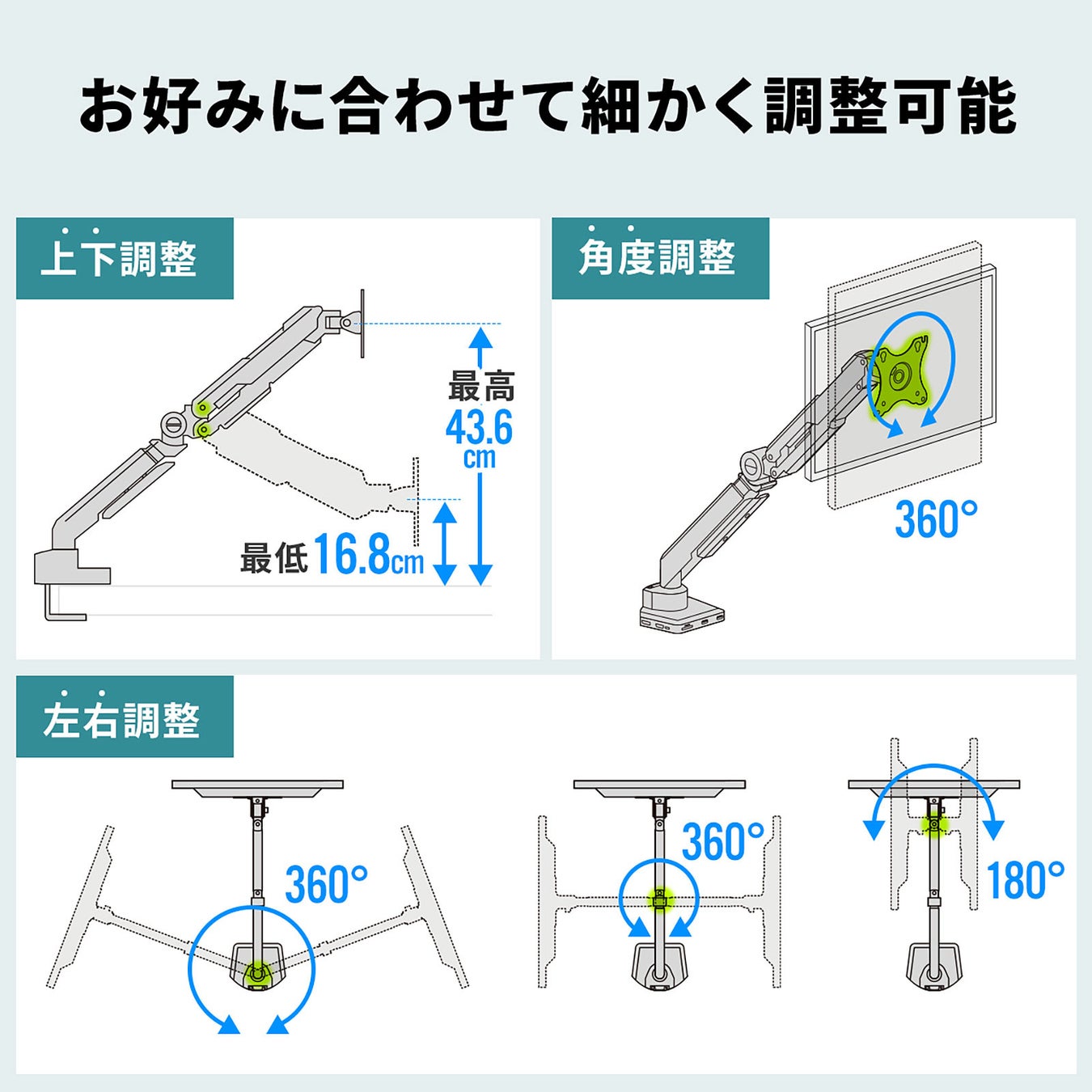 奥行きの広いデスクなどでの使用に最適です。液晶モニタを目線の高さに合わせて上下調節が行えます。ガスシリンダー内蔵で、スムーズな高さ調整が可能です。
