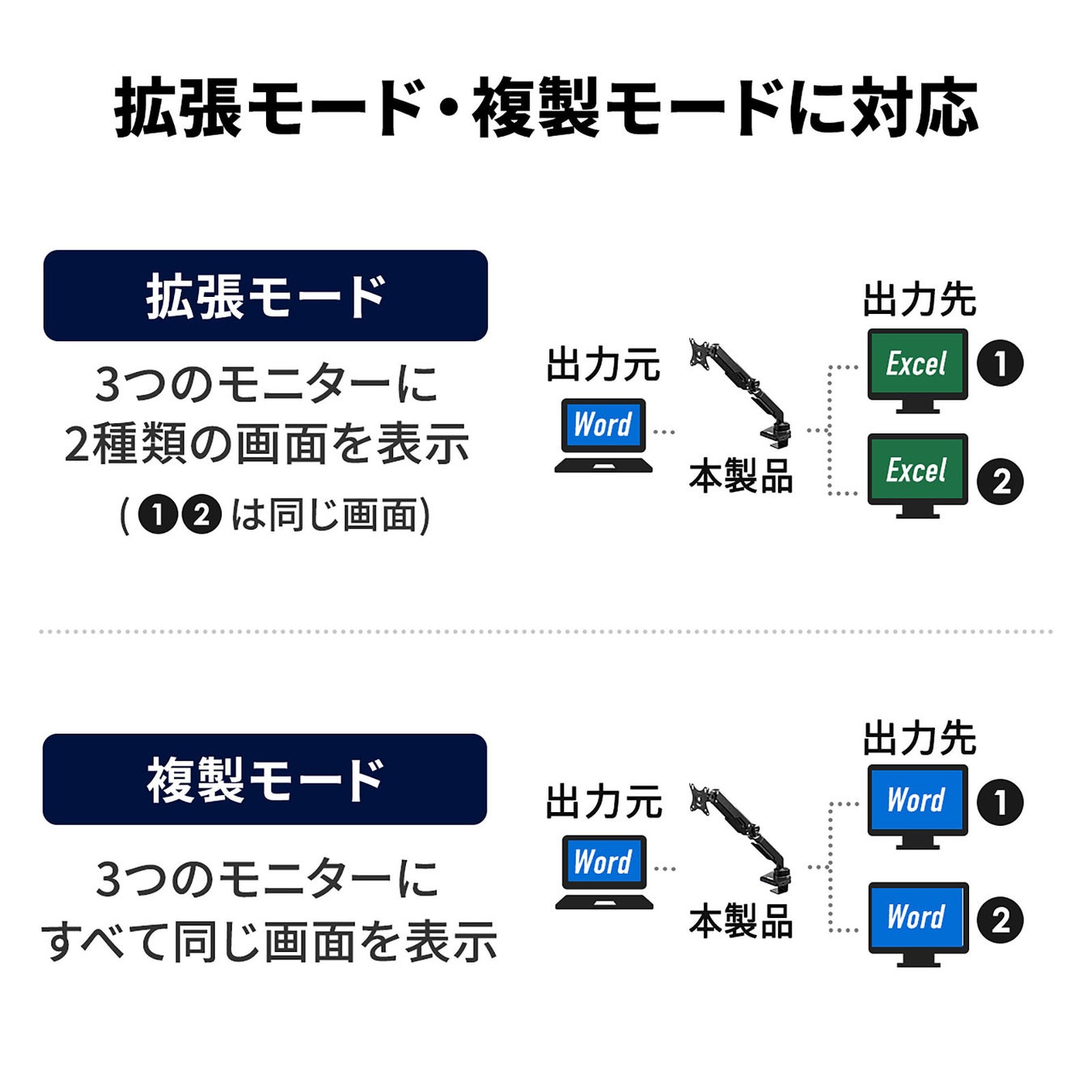 サンワサプライ株式会社(本社:岡山市北区田町1-10-1、 代表取締役社長 山田 和範)が運営している直販サイト『サンワダイレクト』では、モニターアームのベース部にドッキングステーションを内蔵した一体型。ドッキングステーションは4K(60Hz)のHDMI出力・DisplayPort・VGA・SDカードリーダー・有線LANへ拡張できるType-C(100W)接続が可能。モニターアームには水平垂直多関節対応のガス圧式を採用した「100-LA066BK」を発売しました。